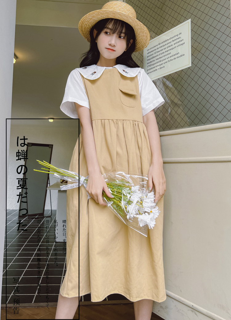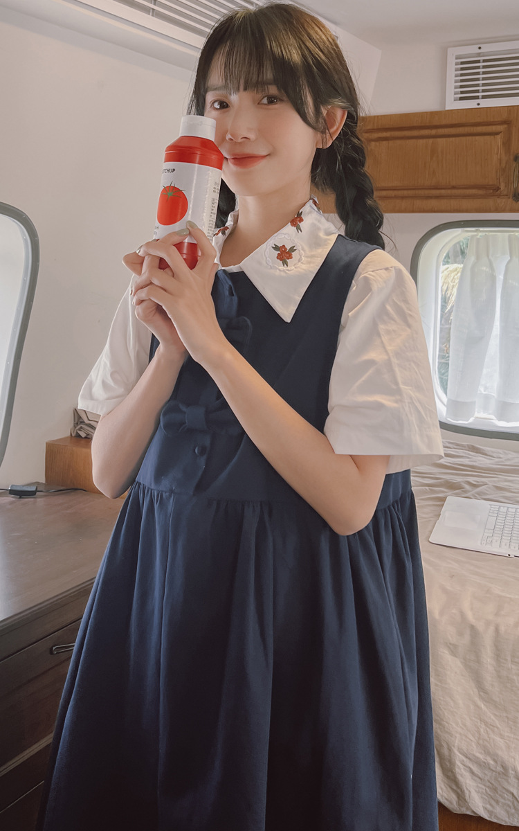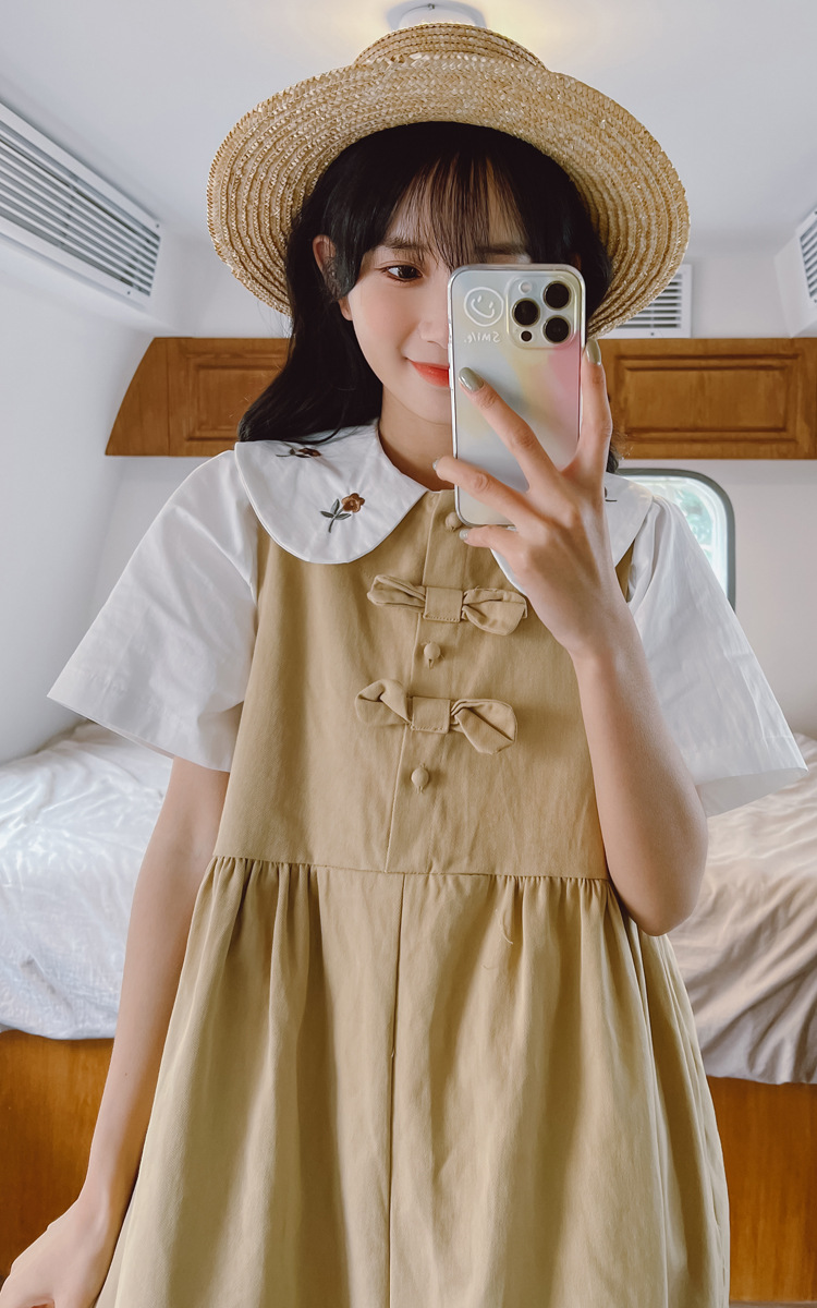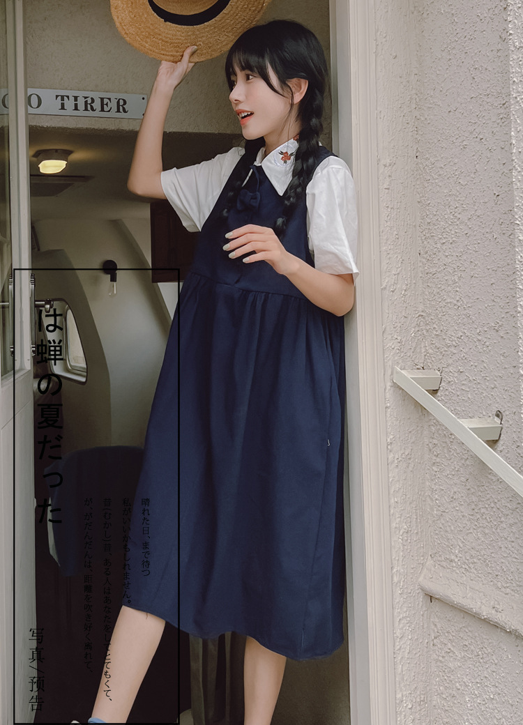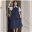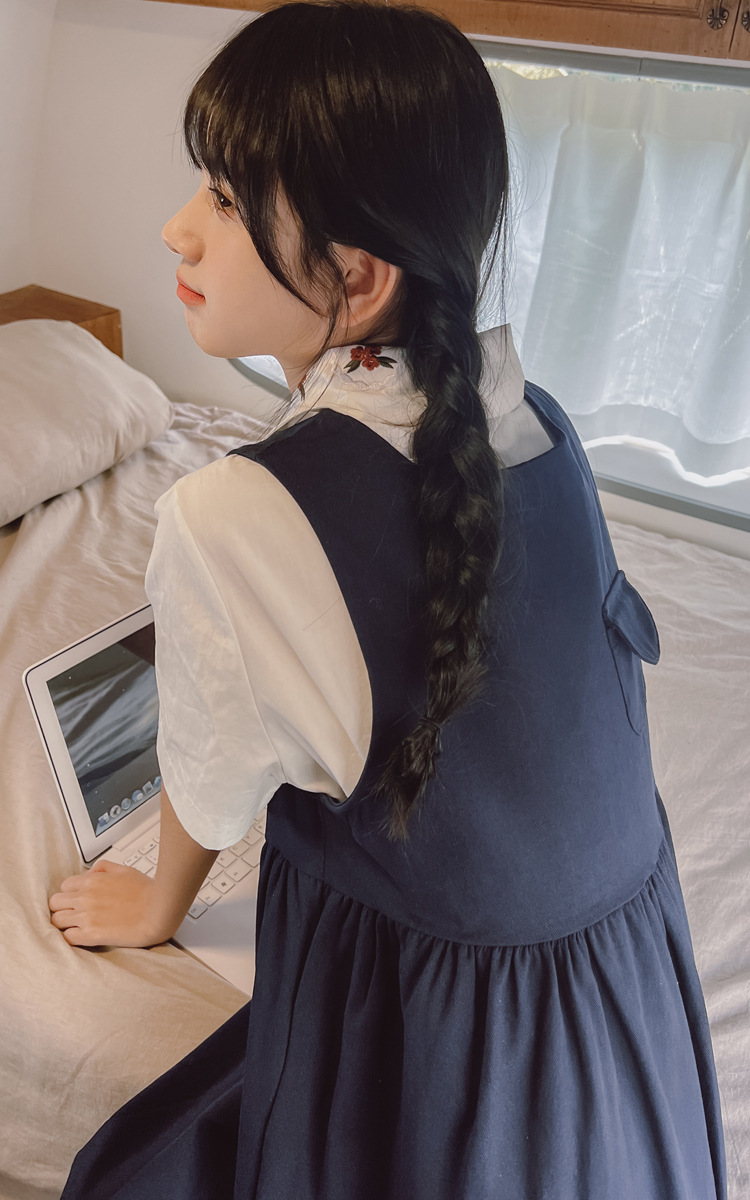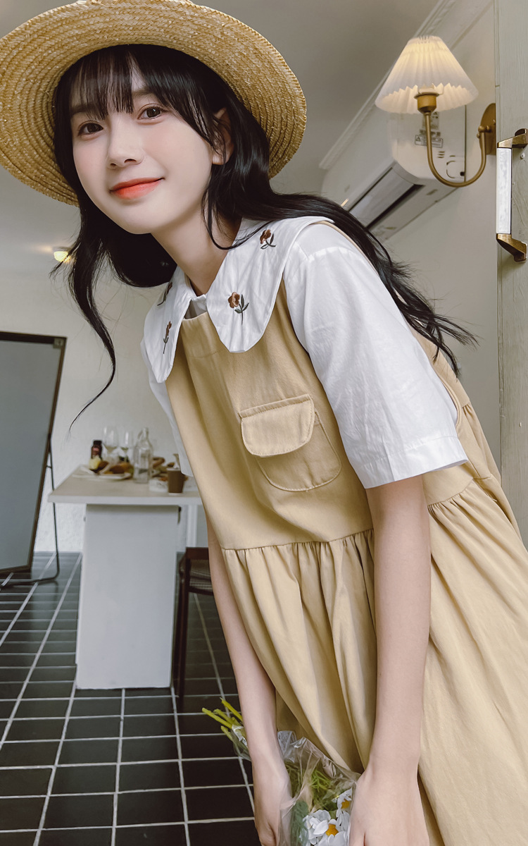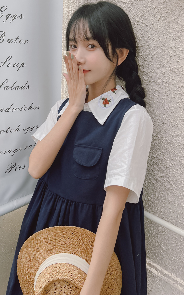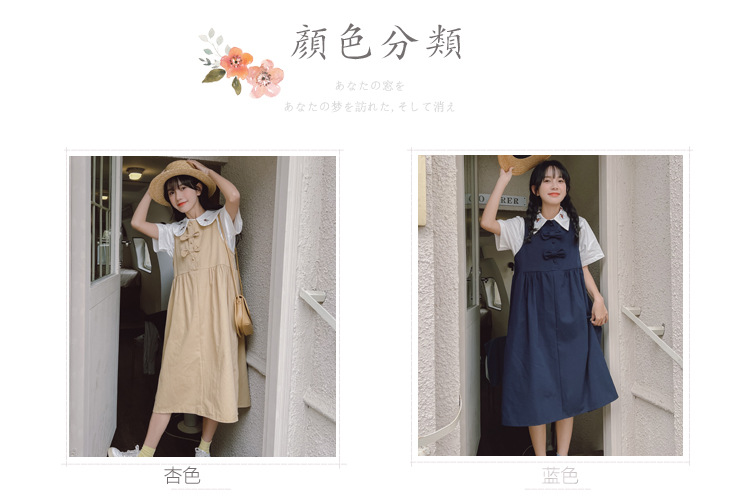 颜色 9945背带裙杏 9946圆领衬衫 9947刺绣衬衫 9945背带裙蓝