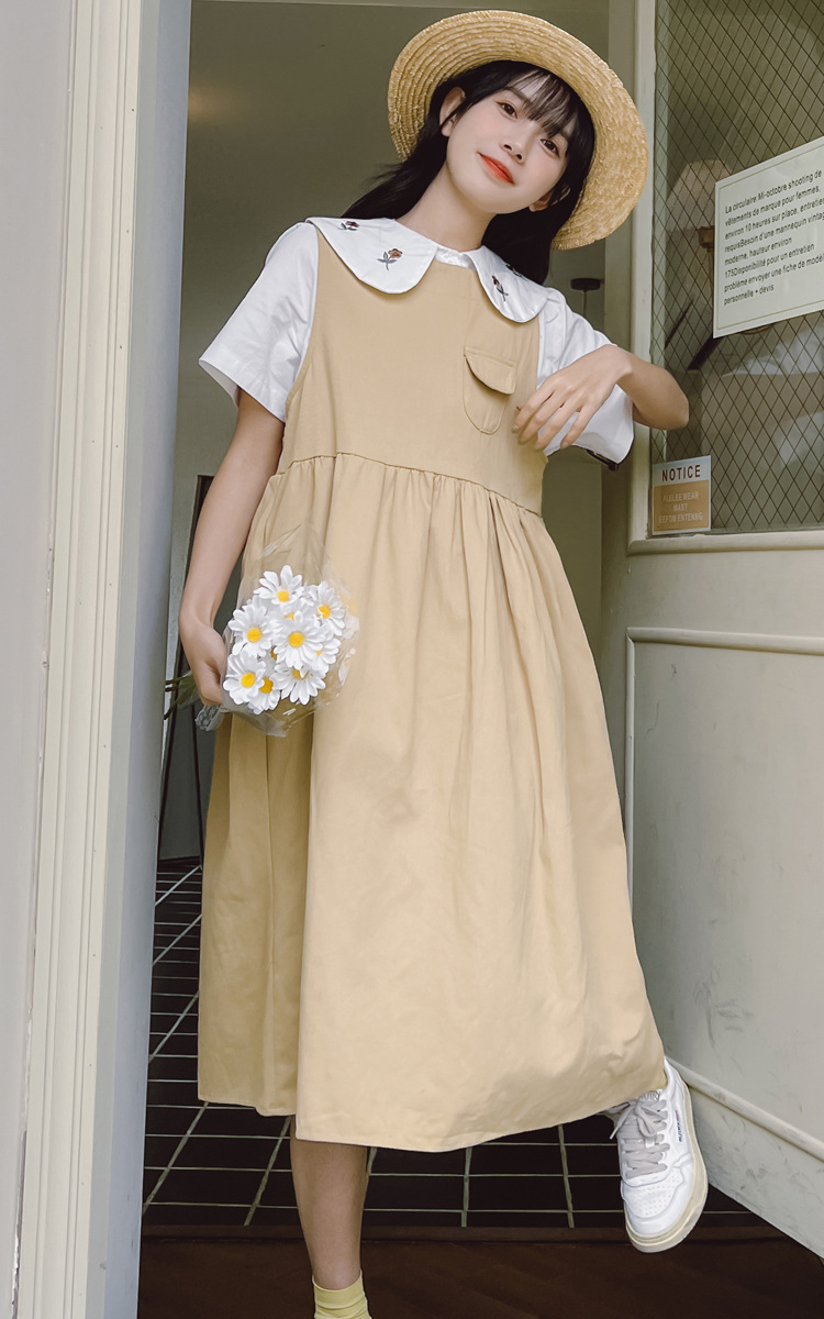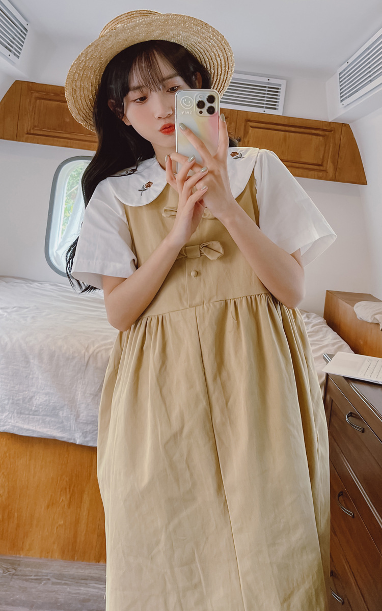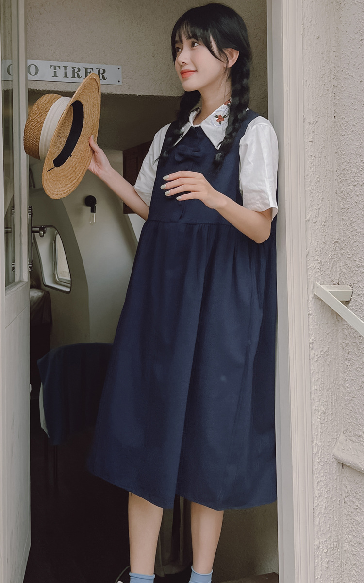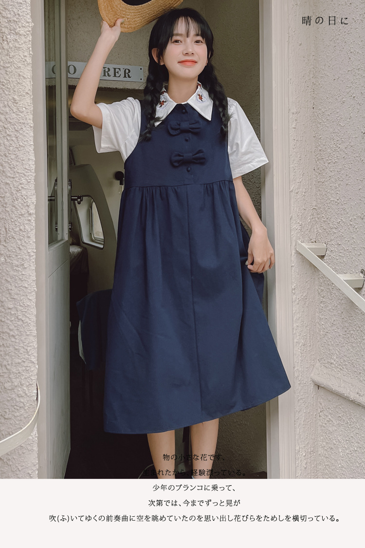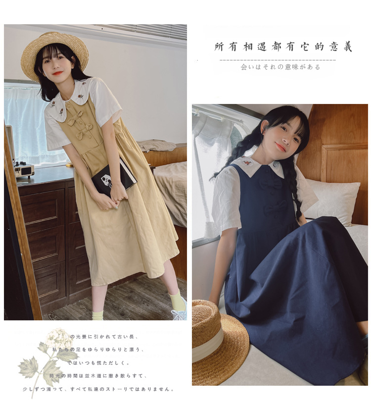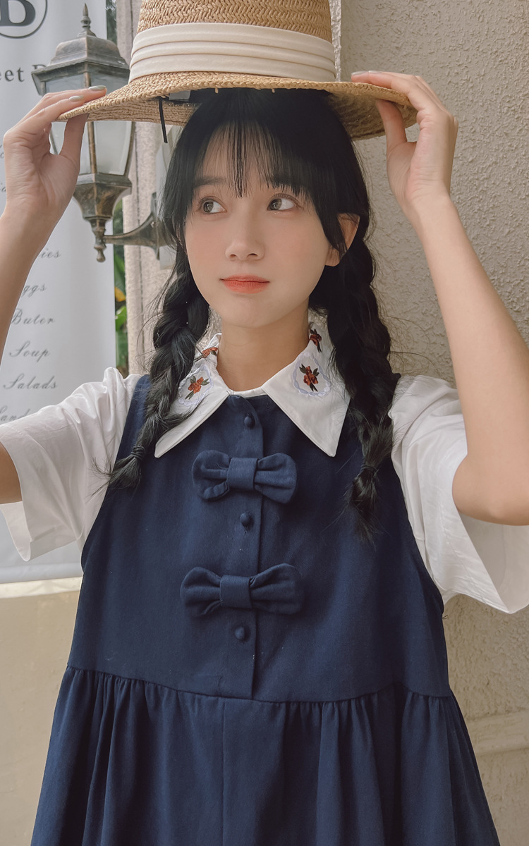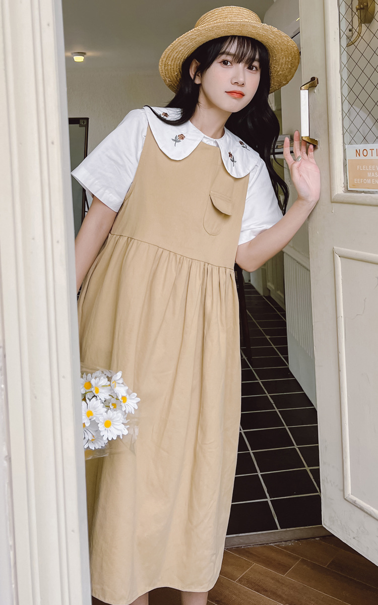 颜色 9945背带裙杏 9946圆领衬衫 9947刺绣衬衫 9945背带裙蓝