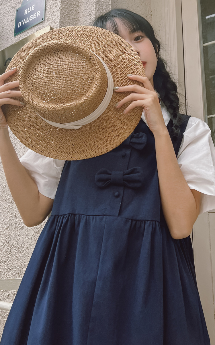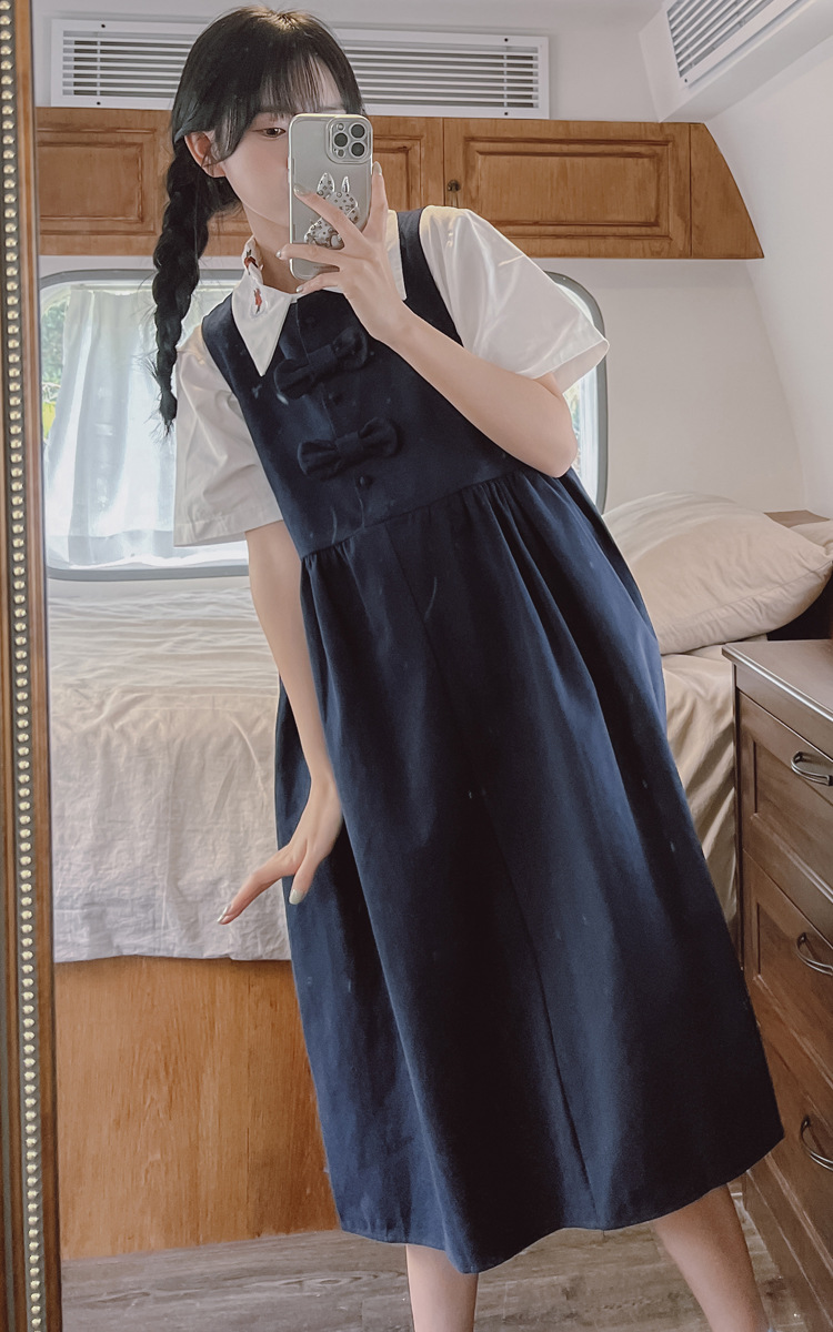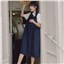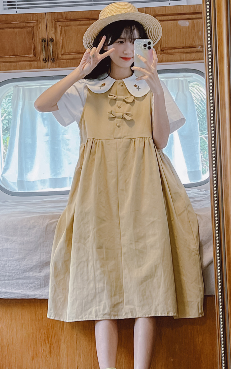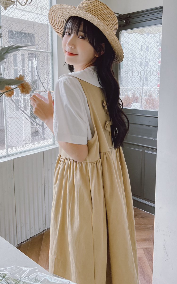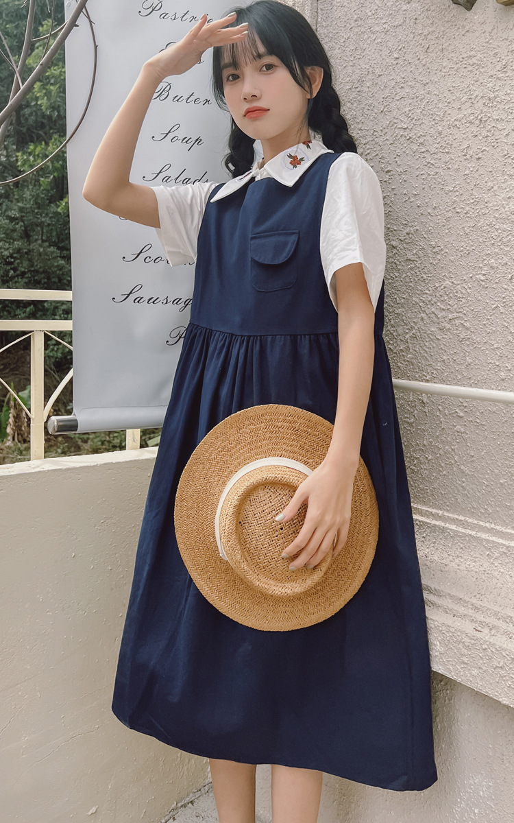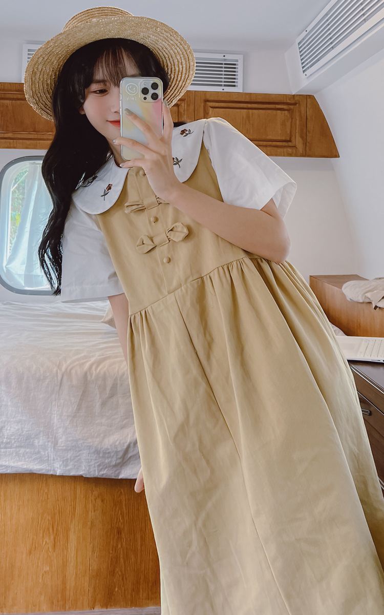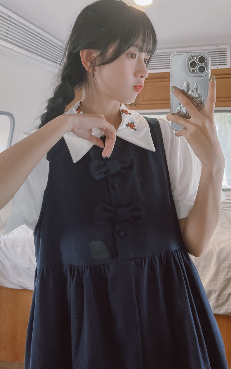 颜色 9945背带裙杏 9946圆领衬衫 9947刺绣衬衫 9945背带裙蓝