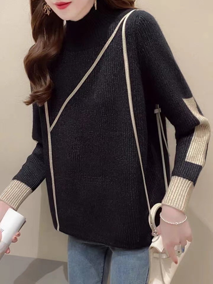货号:半高领拼色打底衫毛衣