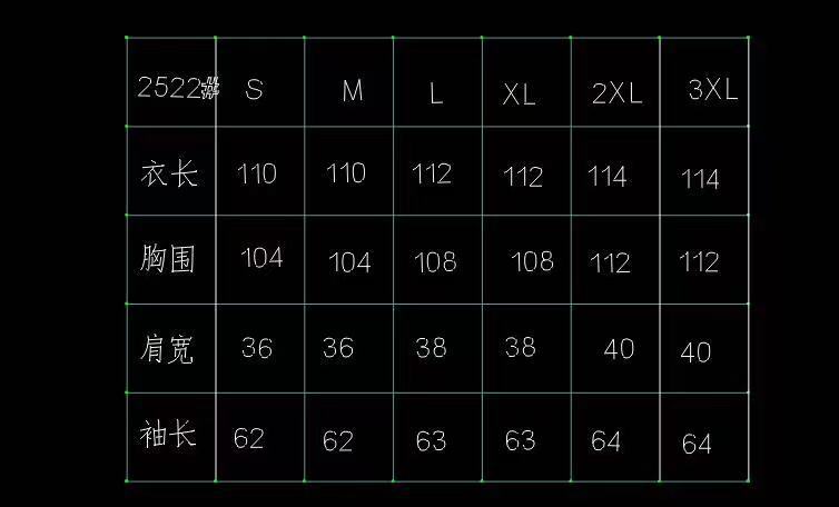 尺码 2XL 3XL L M S XL
