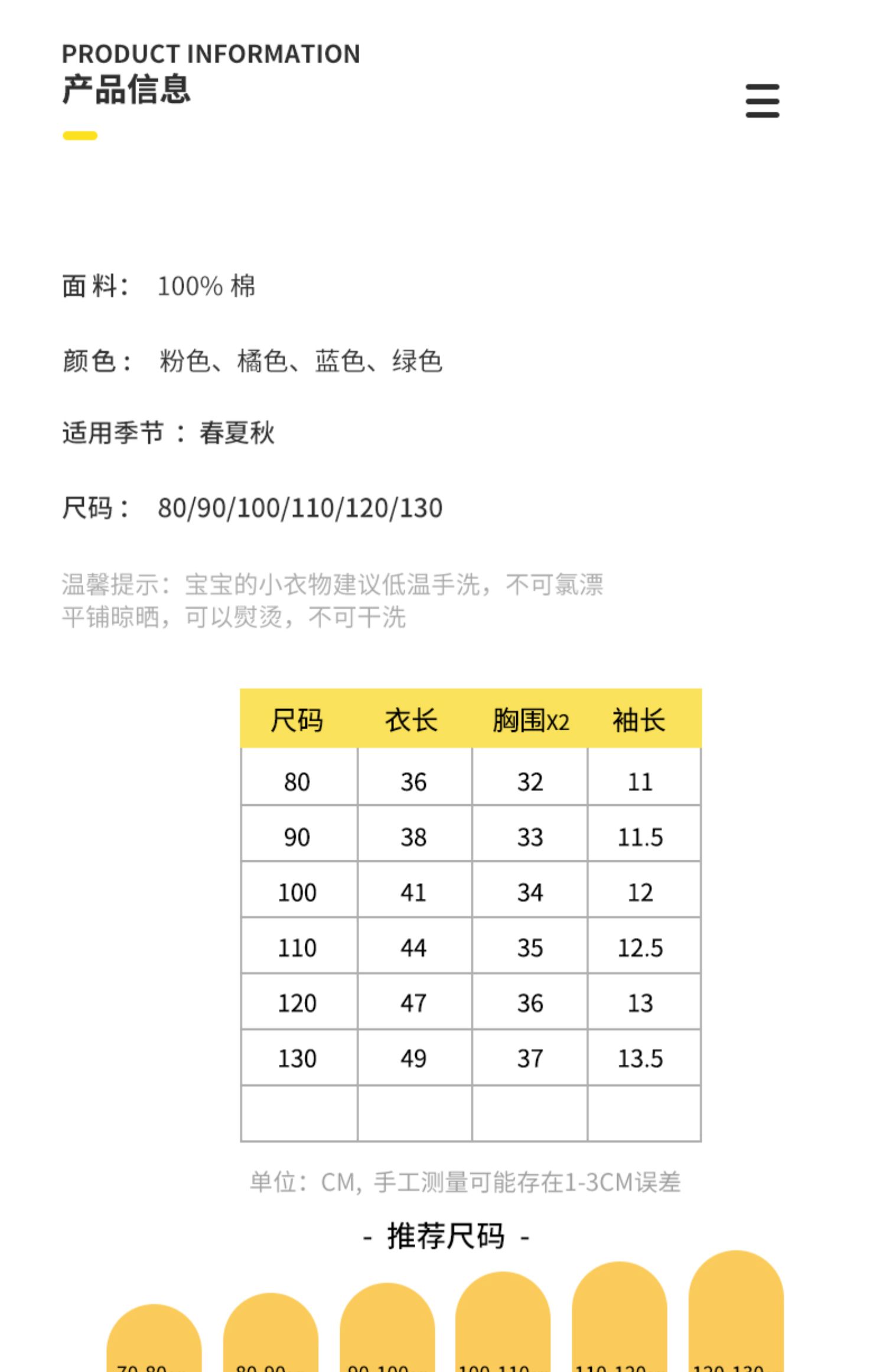尺码 100cm 110cm 120cm 130cm 80cm 90cm