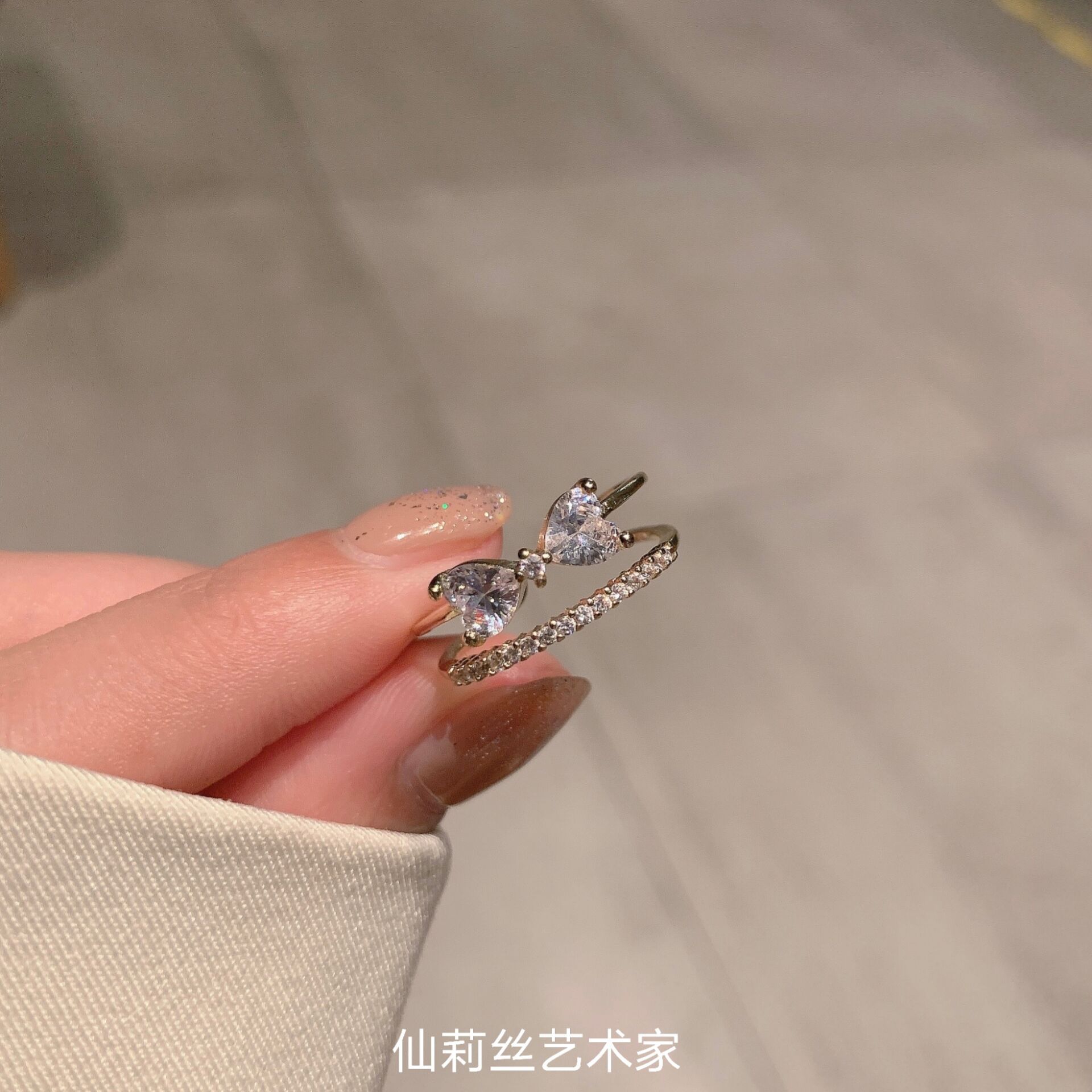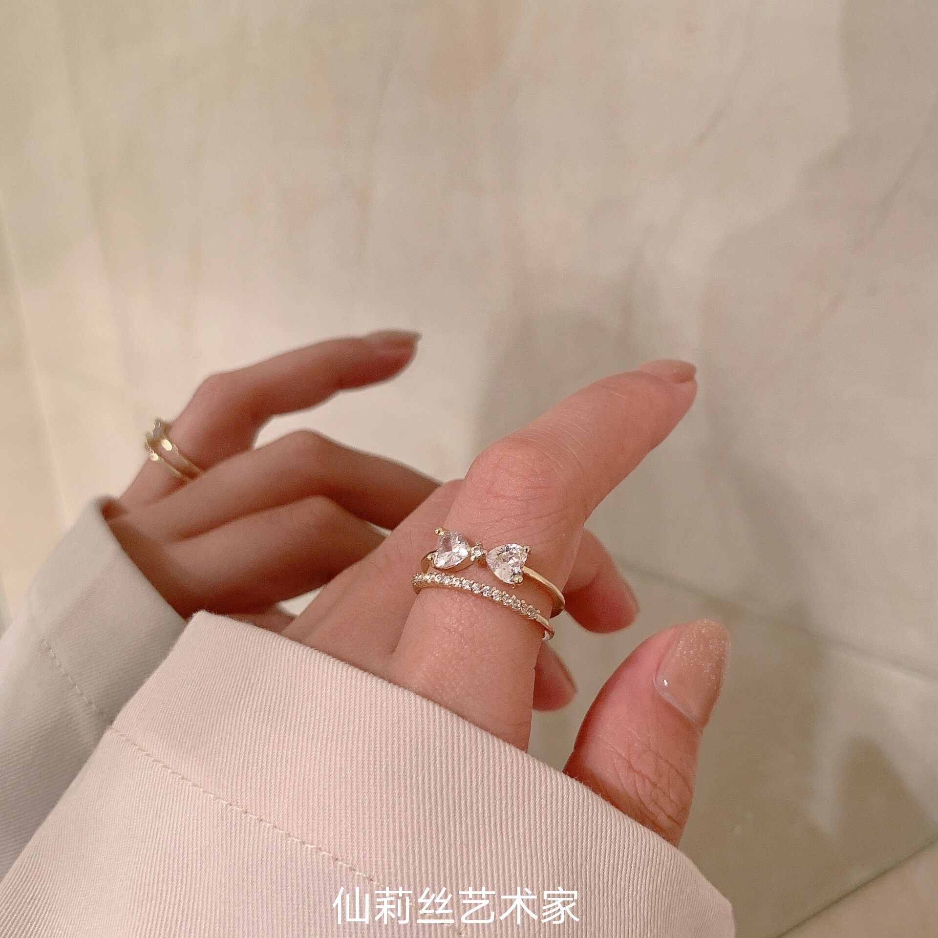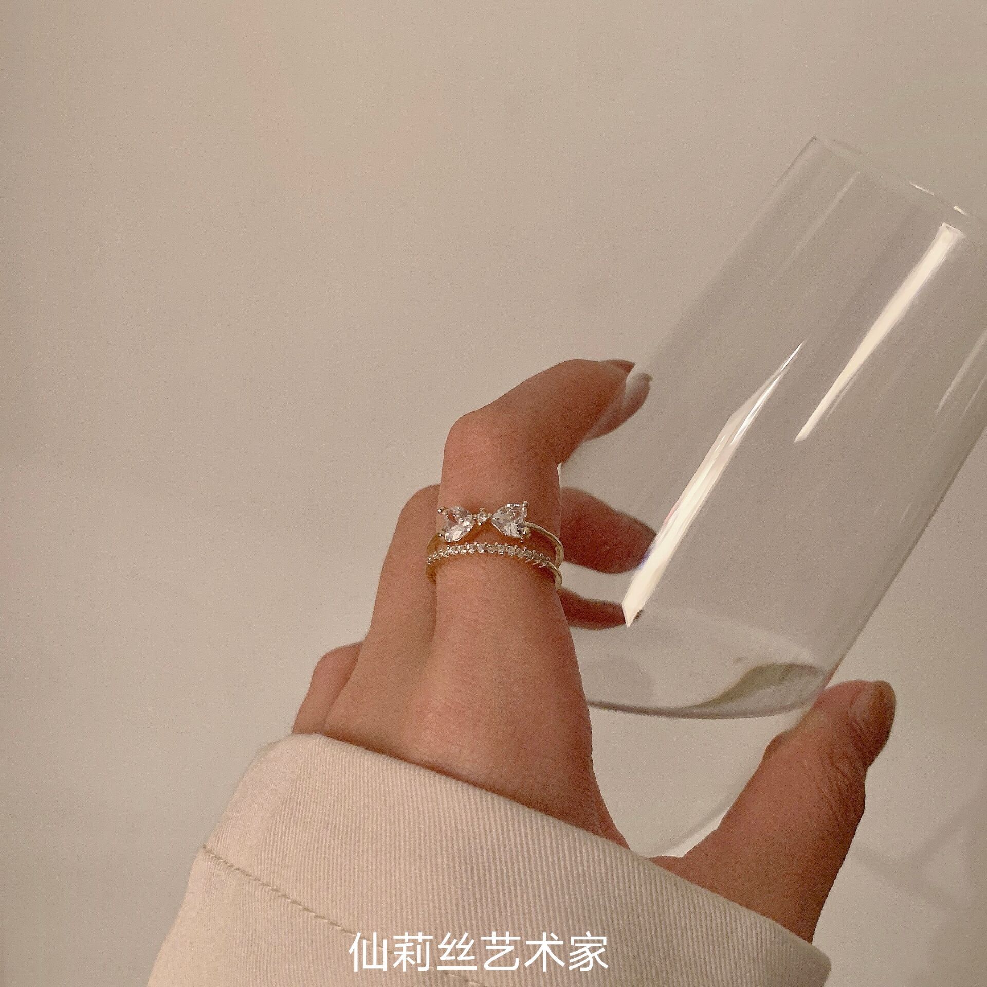 颜色 双层蝴蝶结戒指金色