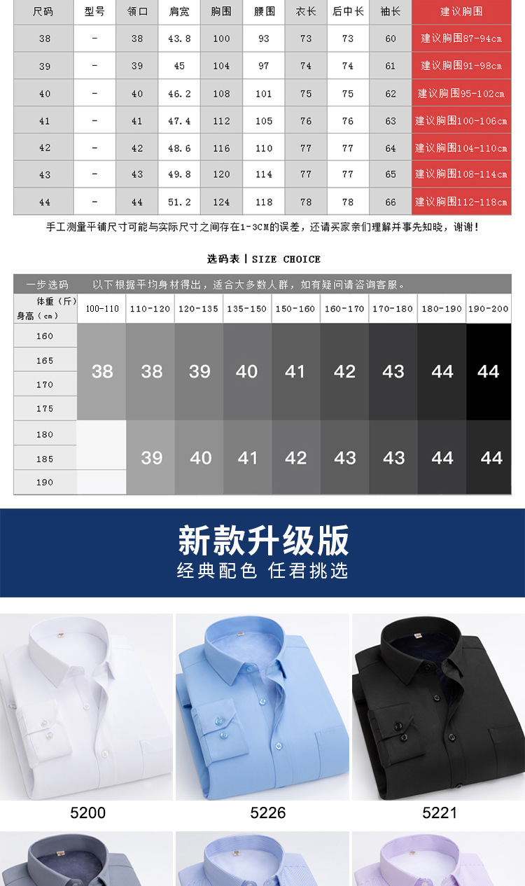 尺码 38/M 39/L 40/XL 41/2XL 42/3XL 43/4XL 44/5XL