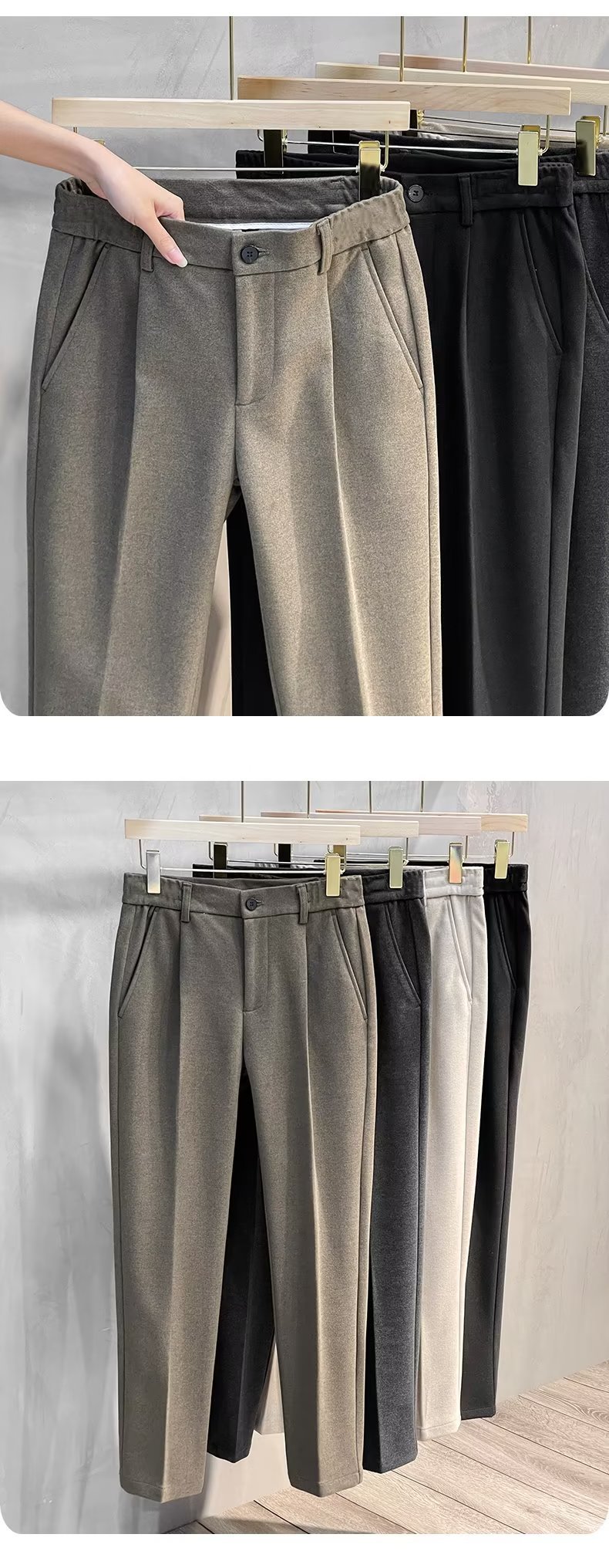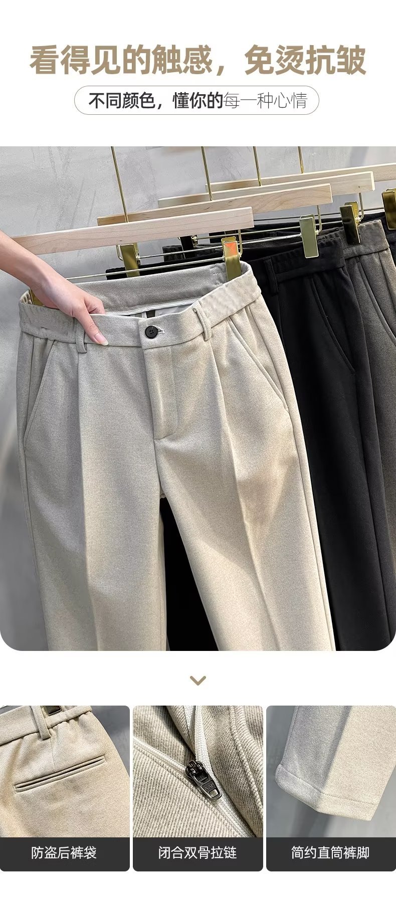 颜色 黑色九分加绒 深灰色九分加绒 卡其色九分常规 棕色九分常规