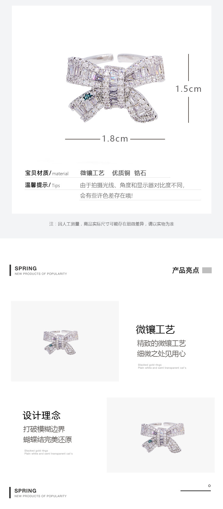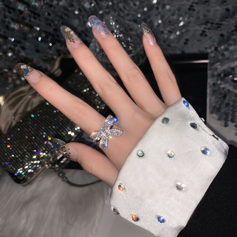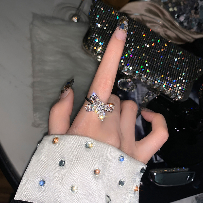 颜色 锆石蝴蝶结戒指