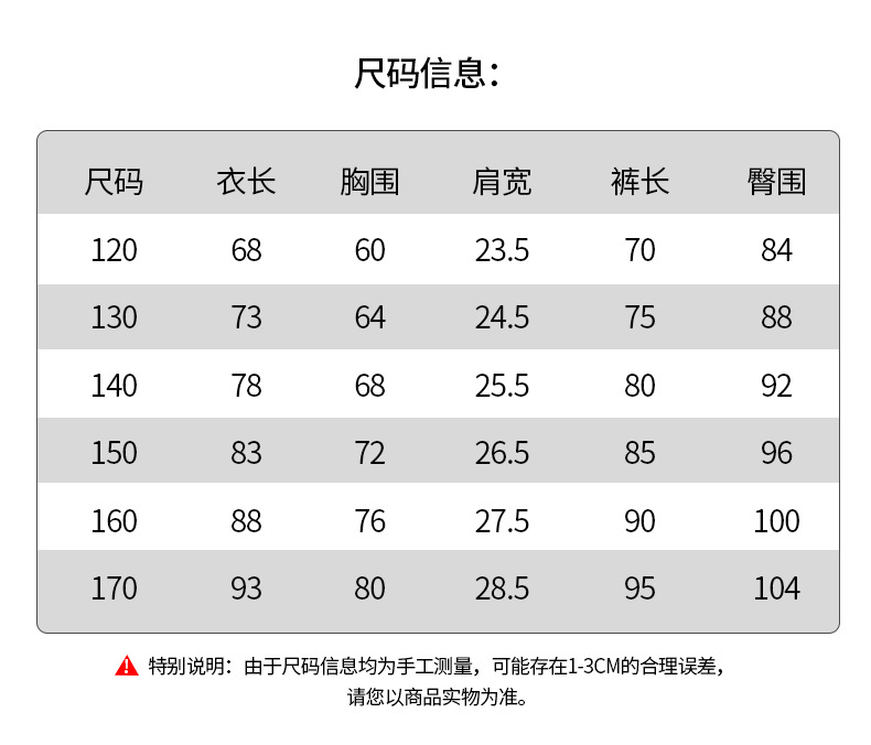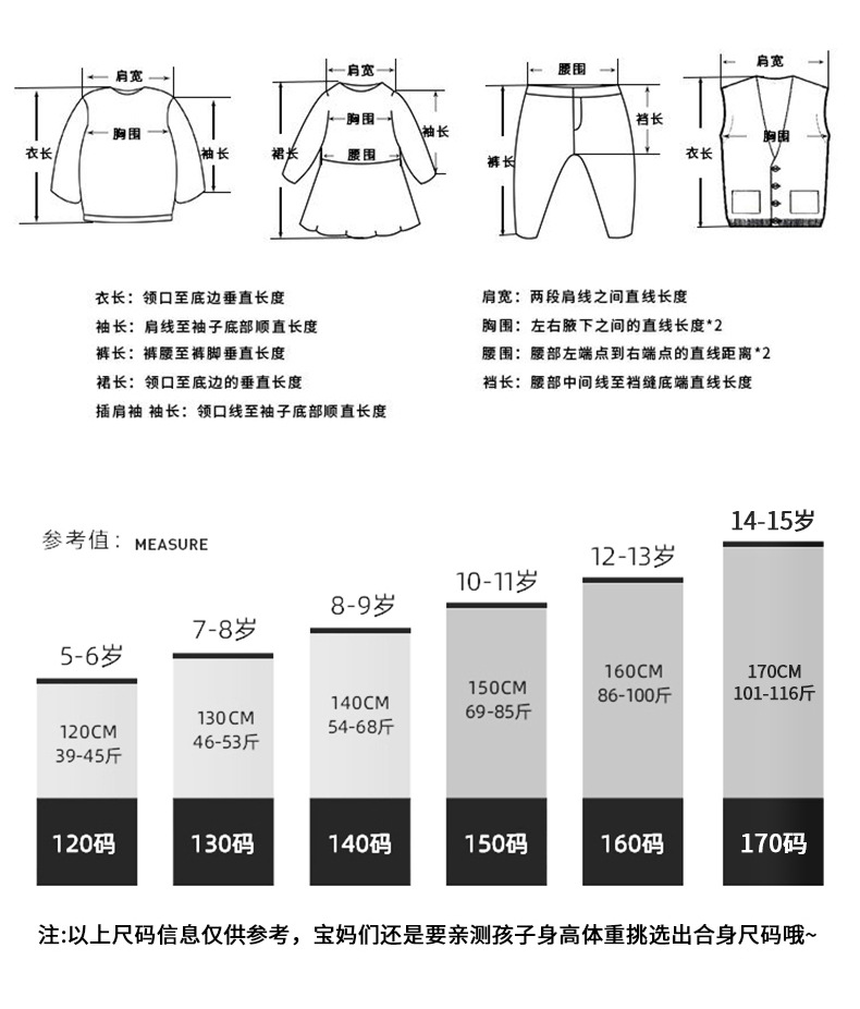尺码 120cm 130cm 140cm 150cm 160cm 170CM