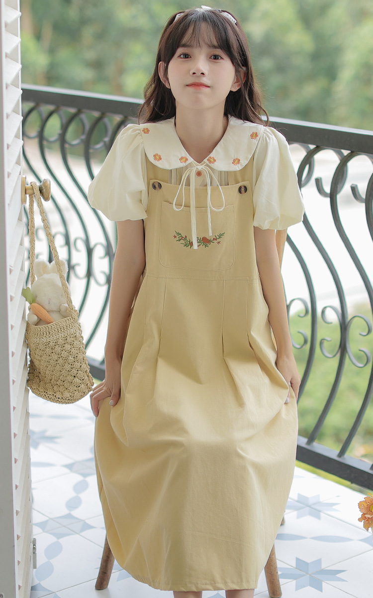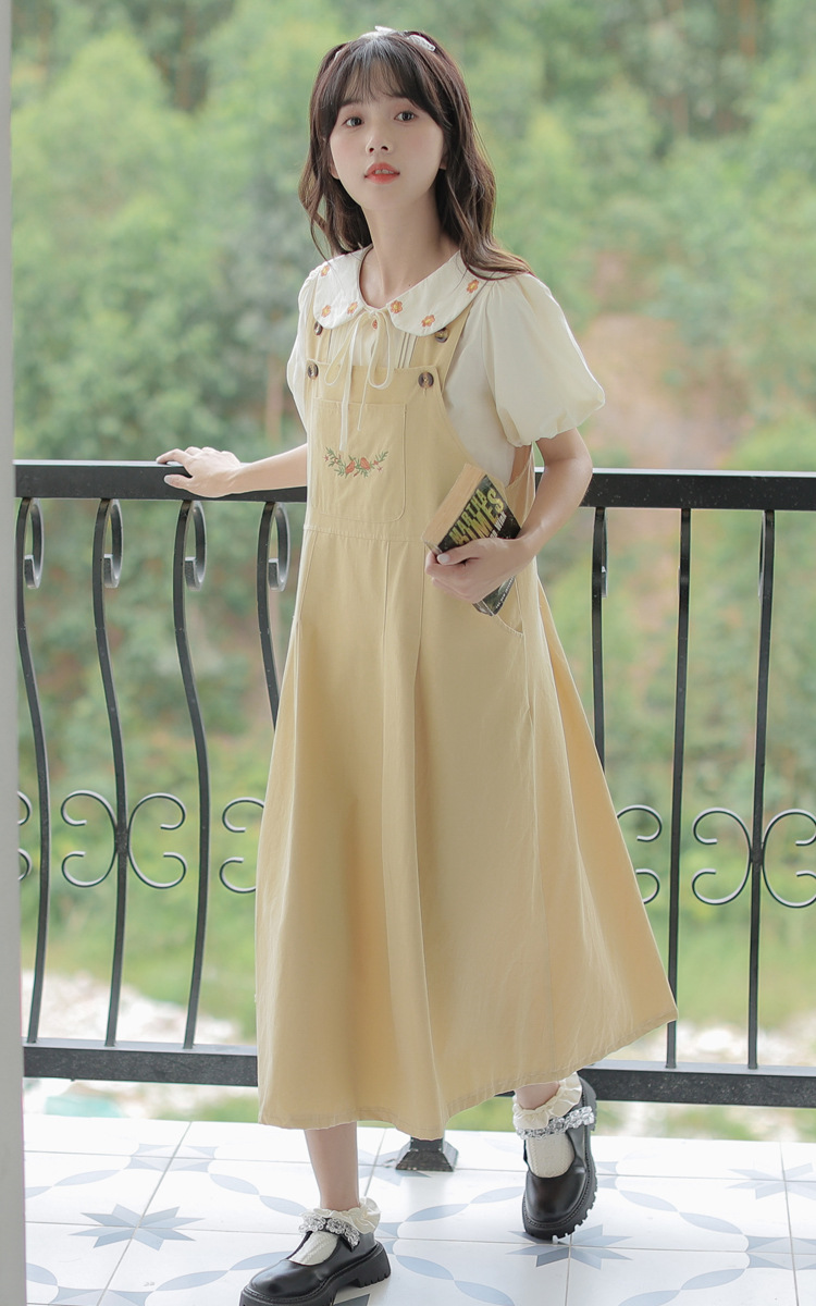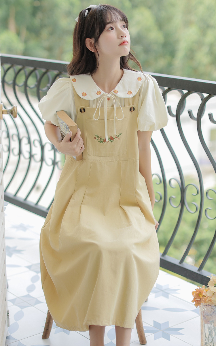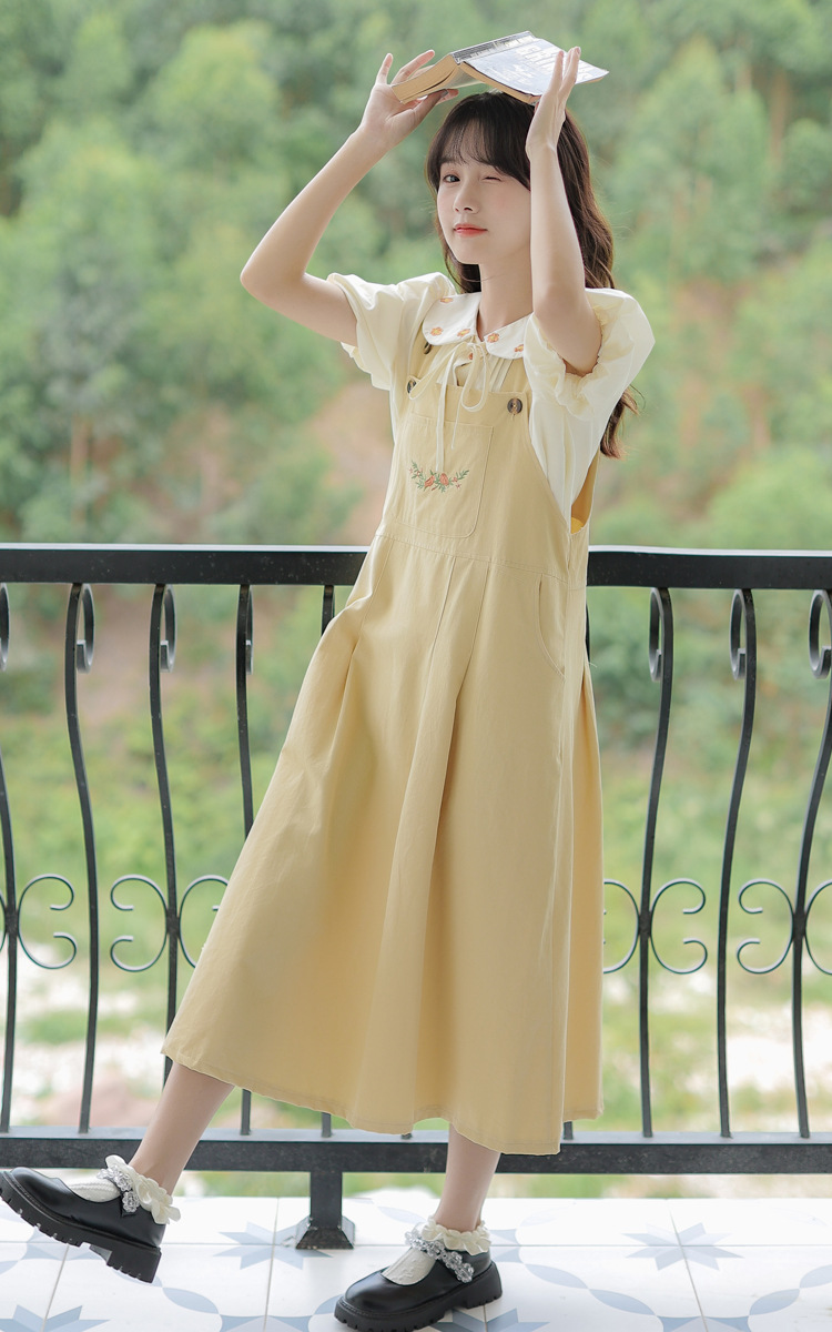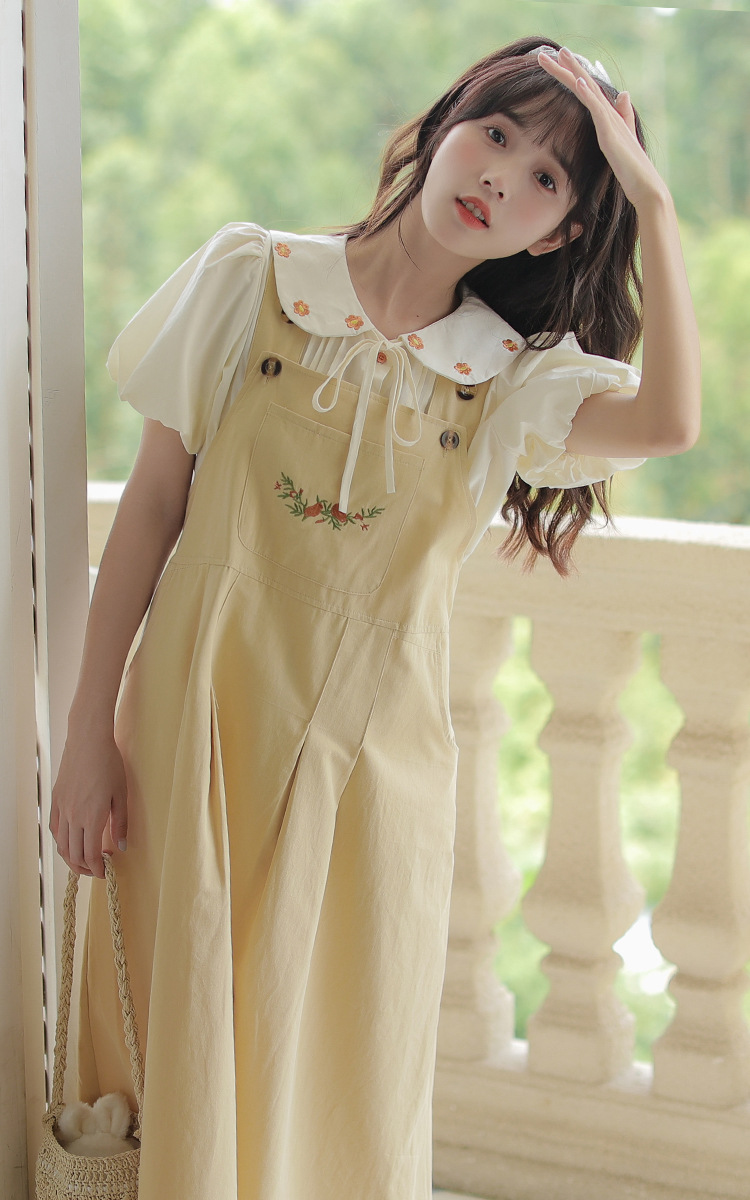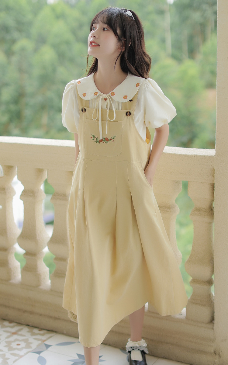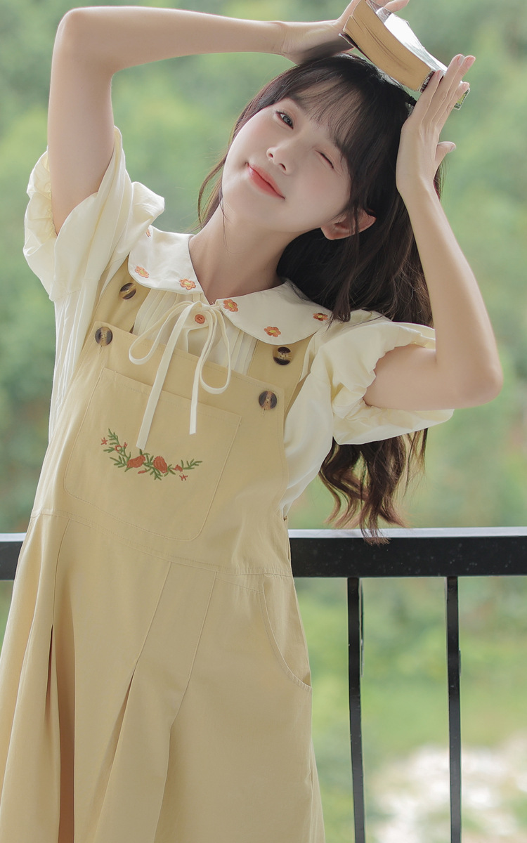 颜色 1081#杏色衬衫 1082#黄色背带裙