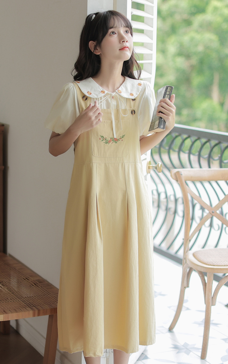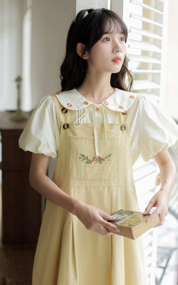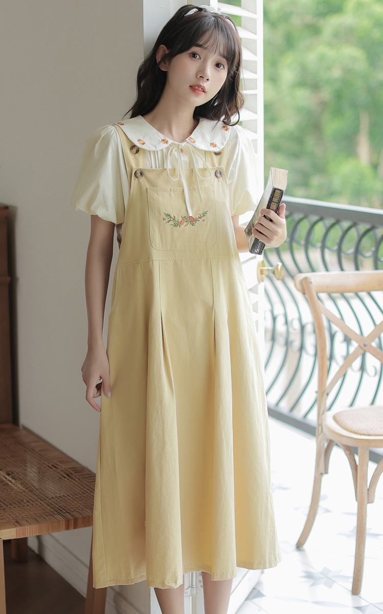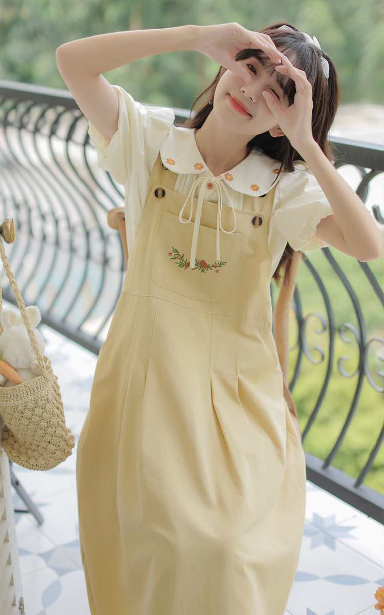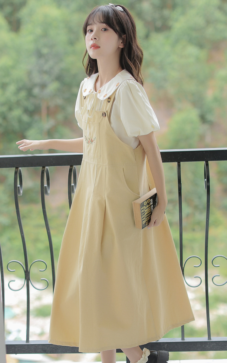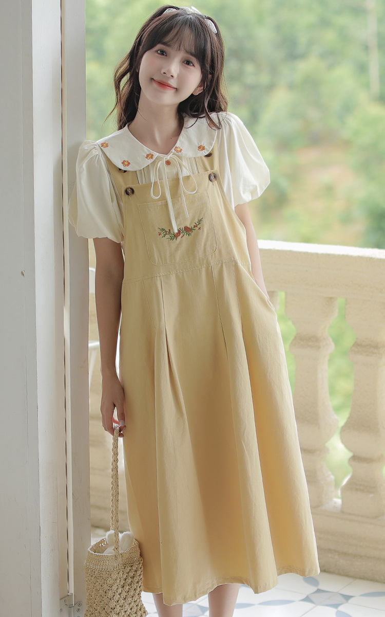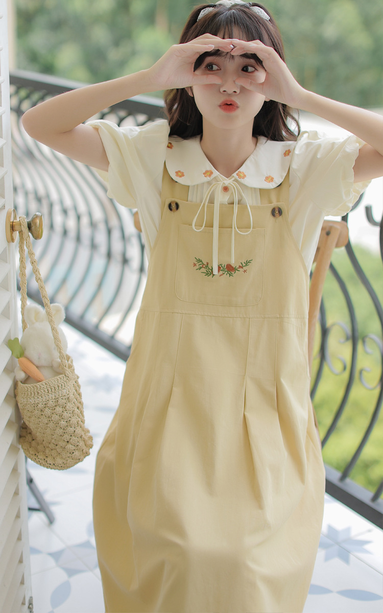 颜色 1081#杏色衬衫 1082#黄色背带裙