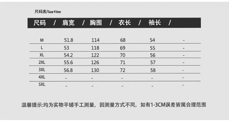 尺码 2XL 3XL L M XL