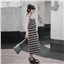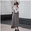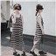颜色 背带条纹 套装(打底衫+条纹裙)