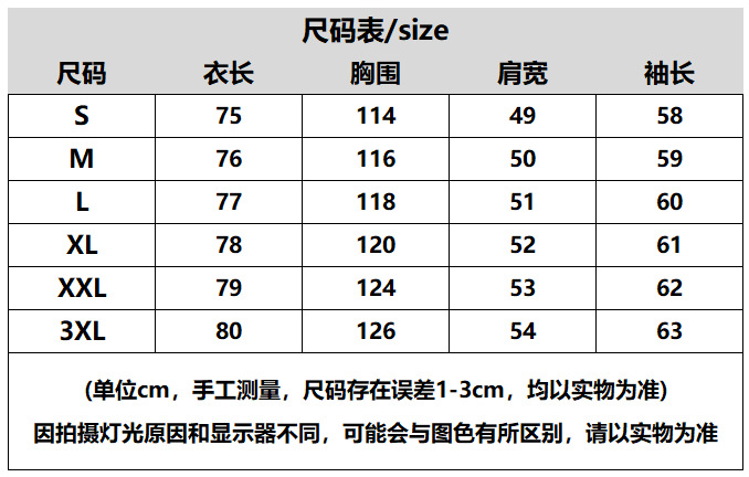 尺码 2XL 3XL L M S XL