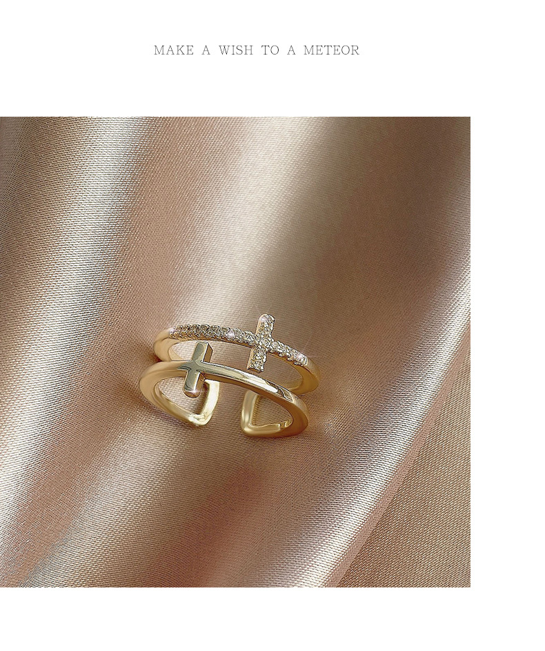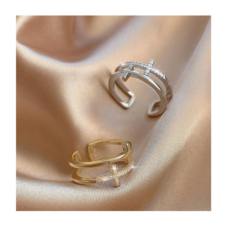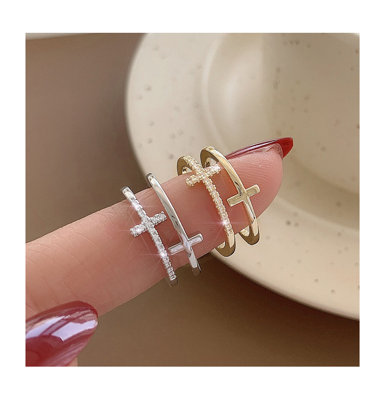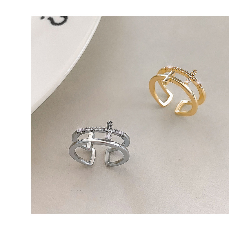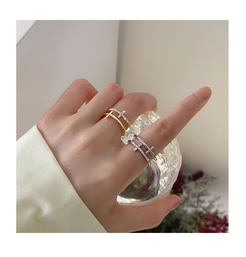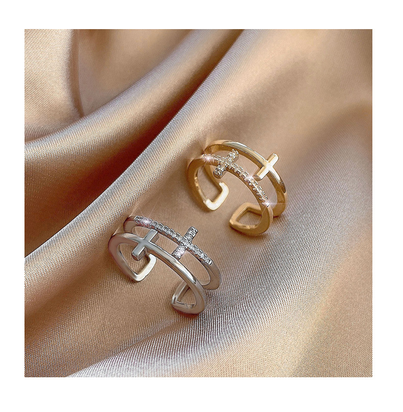 颜色 银色十字双层戒指 金色十字双层戒指