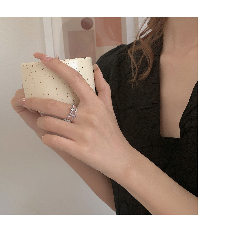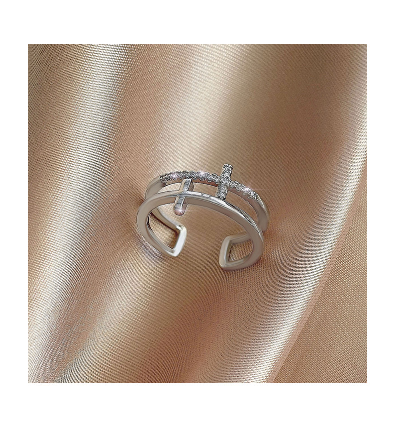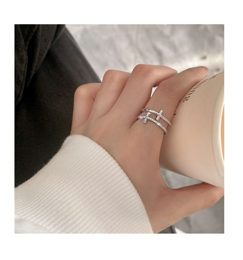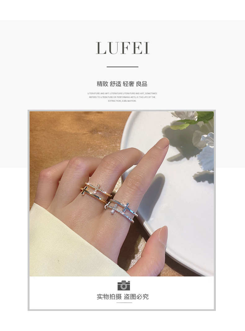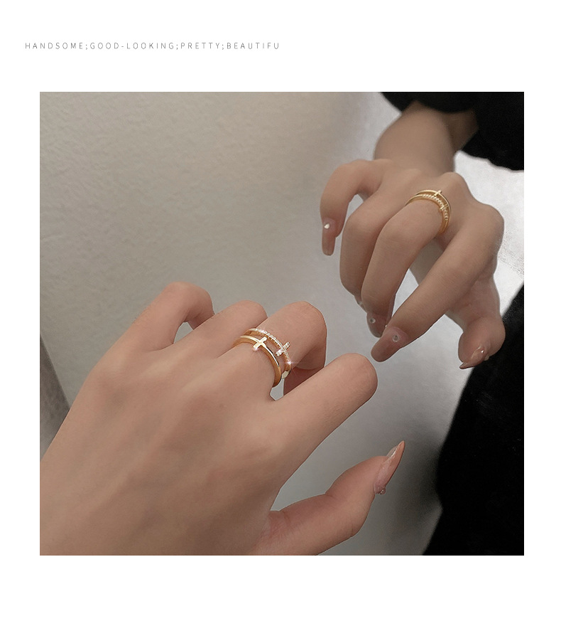 颜色 银色十字双层戒指 金色十字双层戒指
