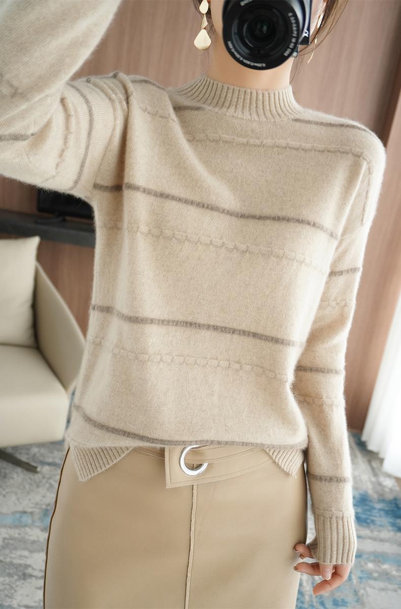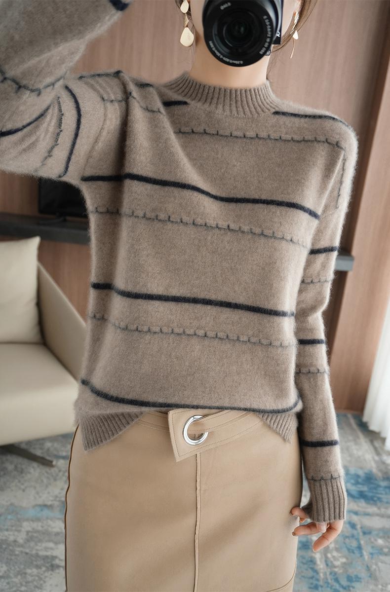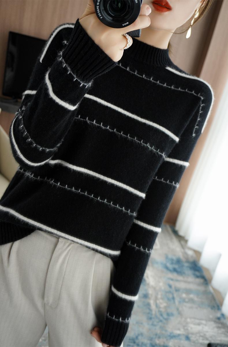 货号:软糯圆领拼色毛衣打底衫