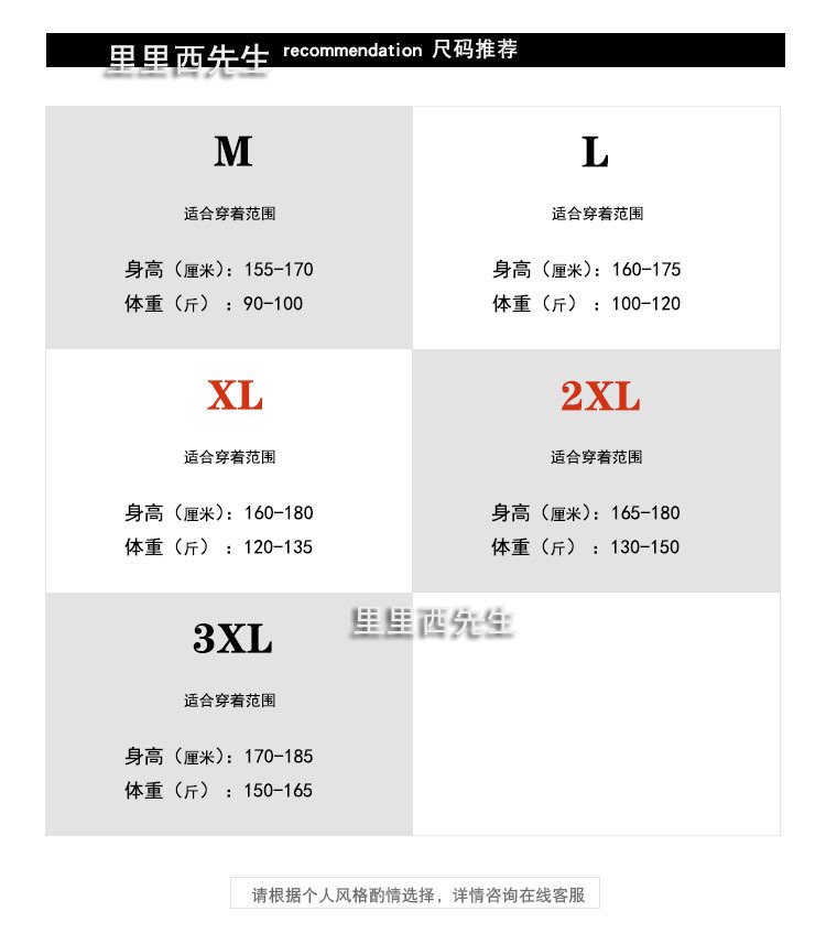 尺码 2XL 3XL L M XL