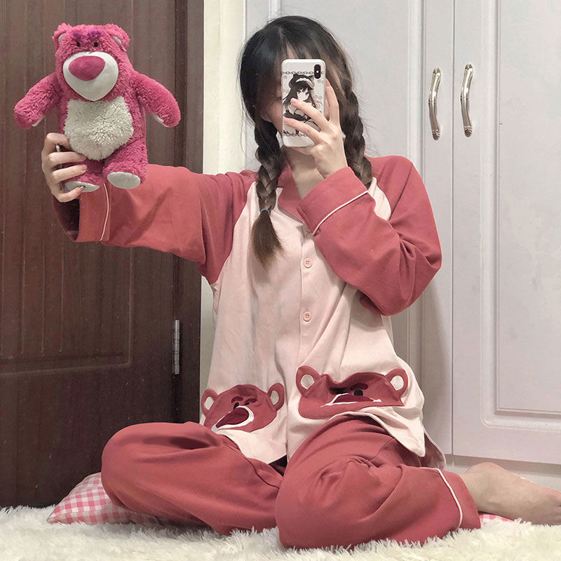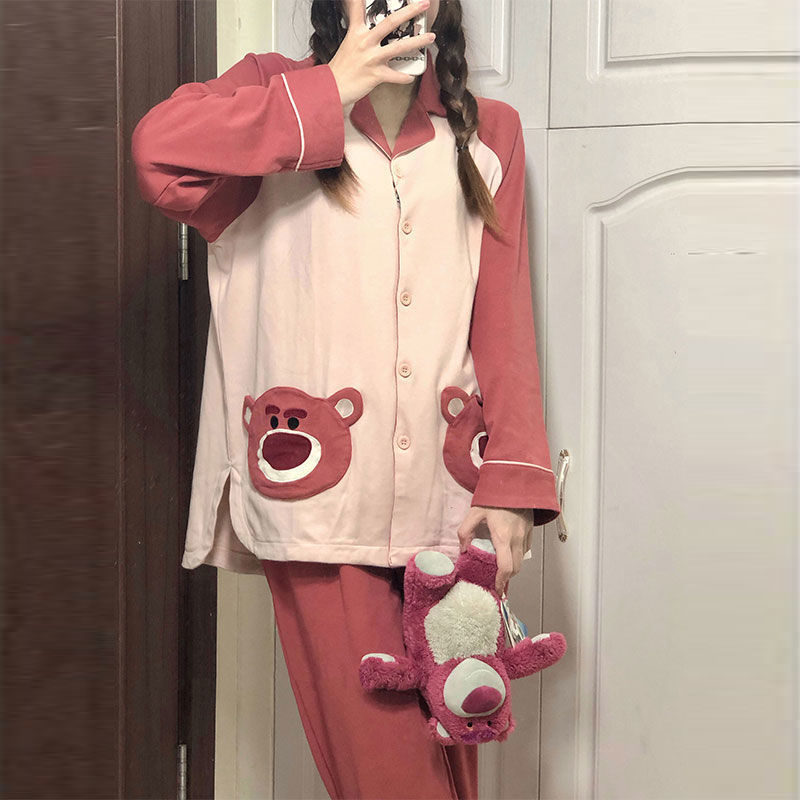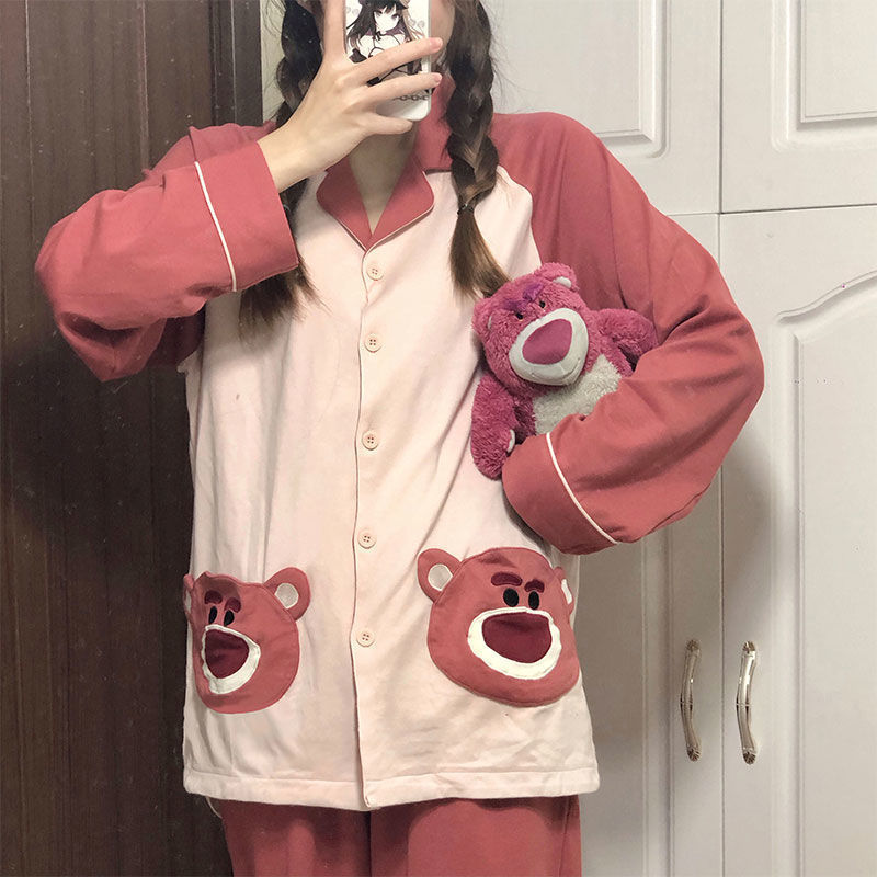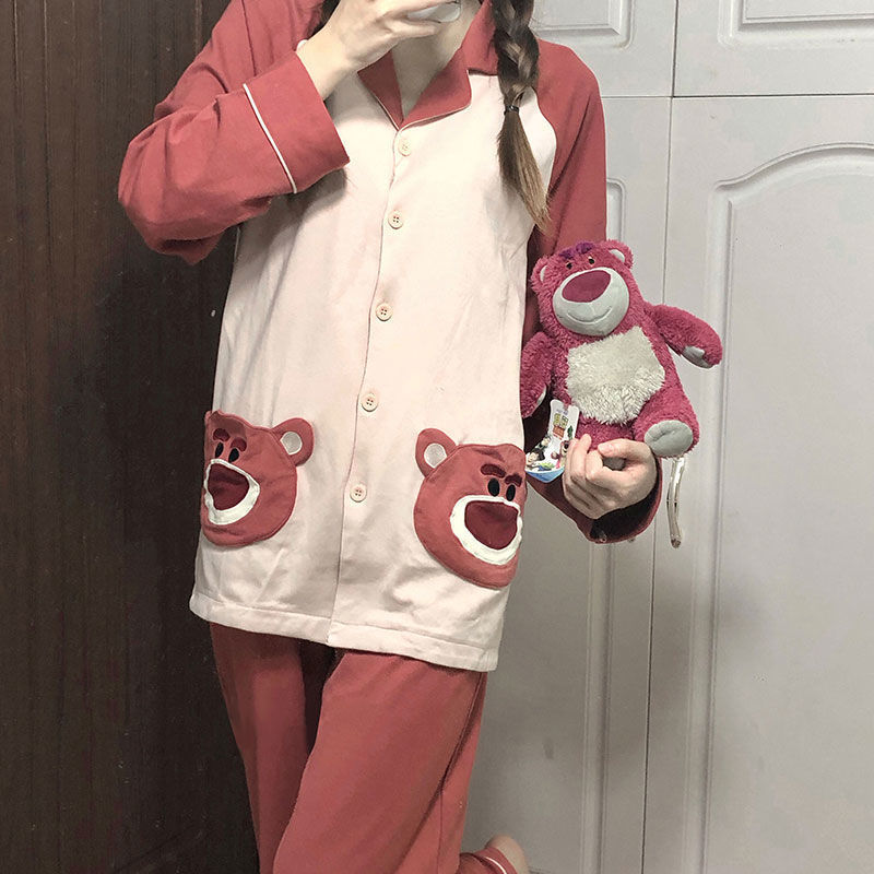 颜色 1174#粉双口袋刺绣熊