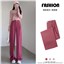 火龙果色宽松西装裤女夏季薄款2022新款高腰垂感直筒小个子阔腿裤