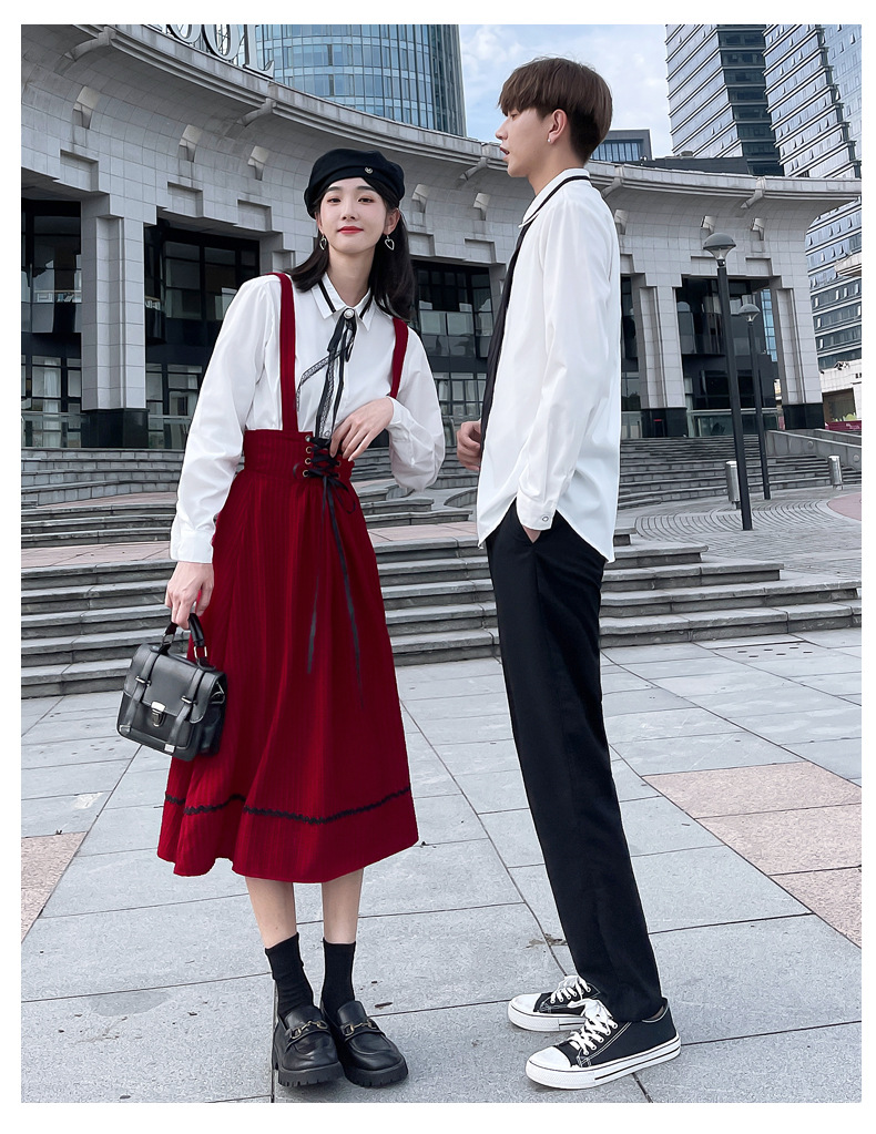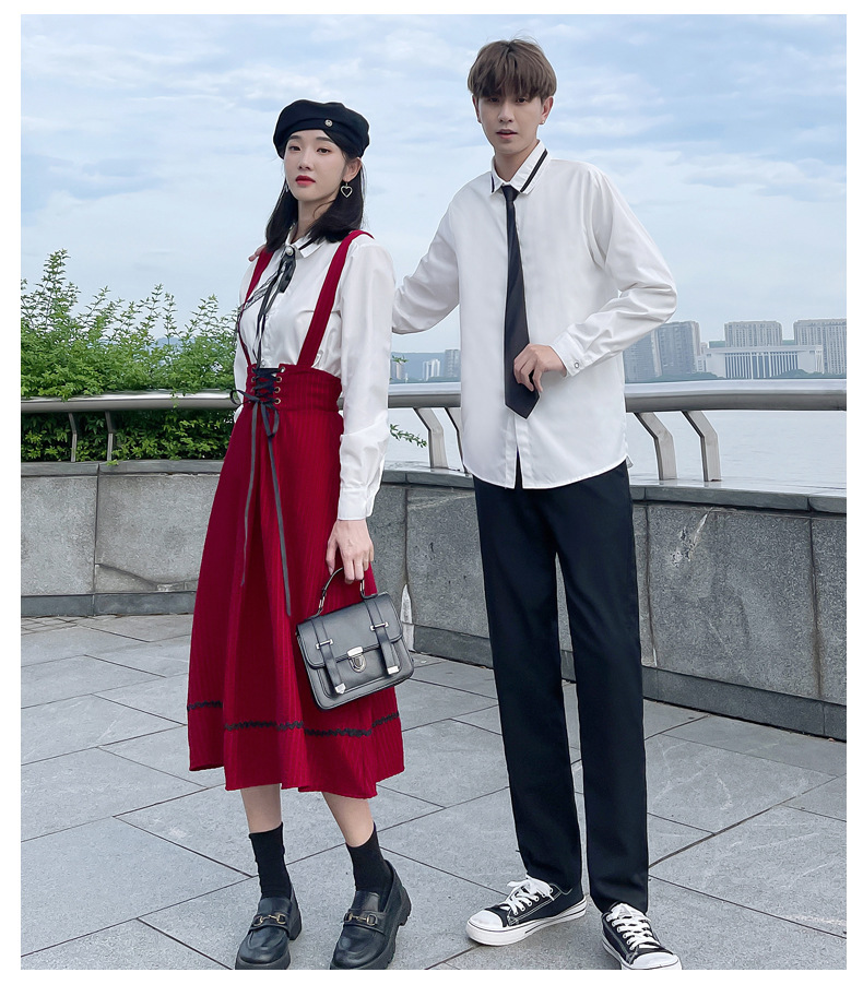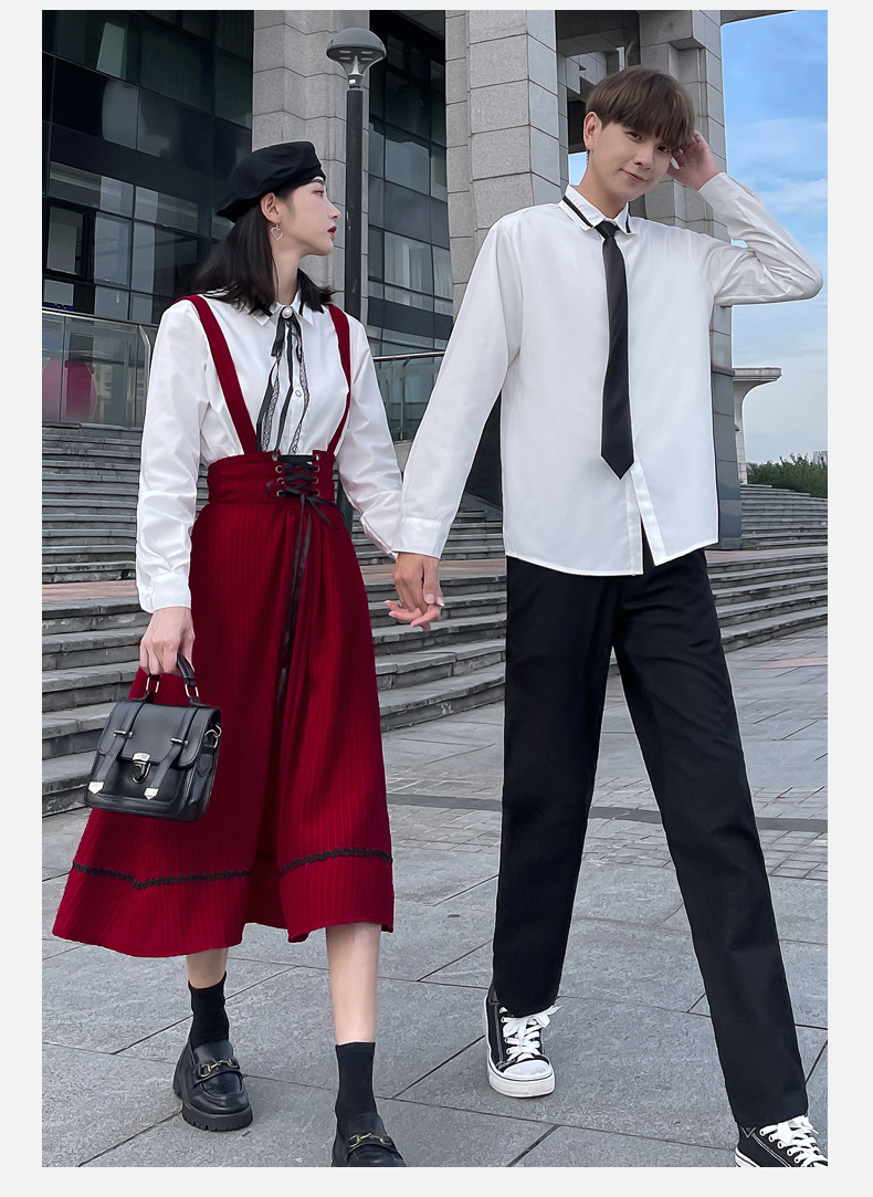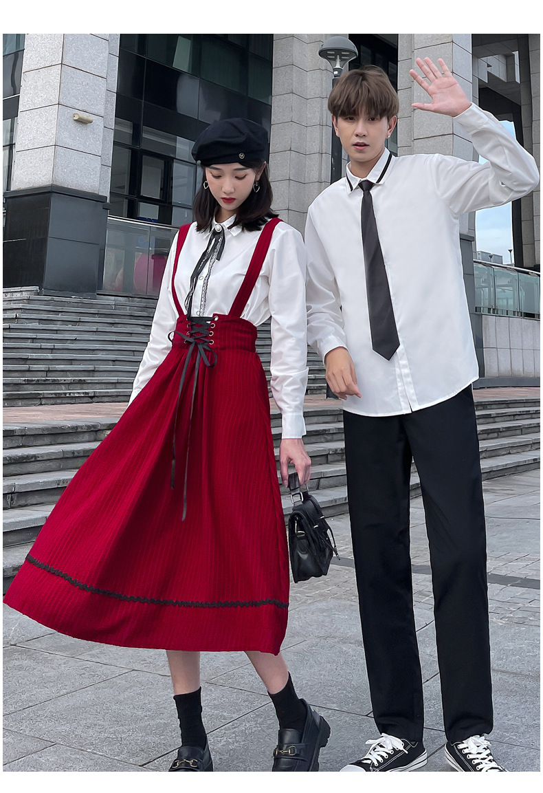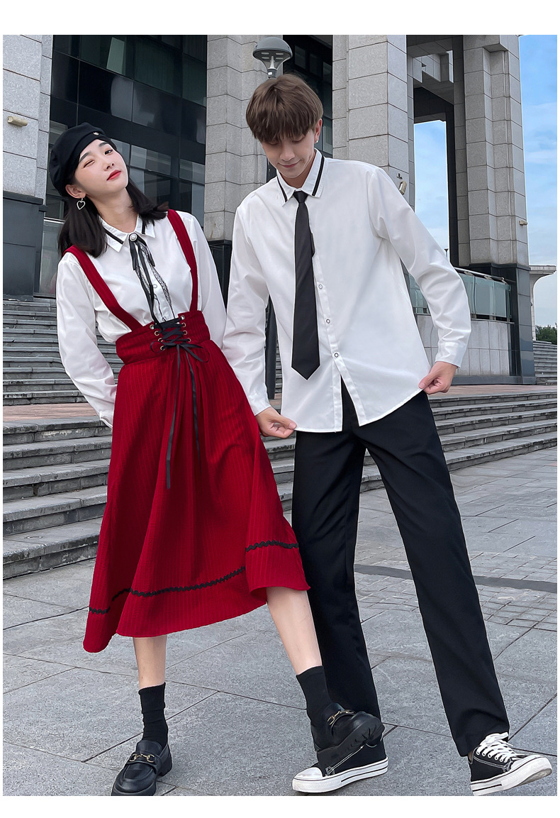 颜色 半身裙 男裤 女衬衣+领结 男是+领带