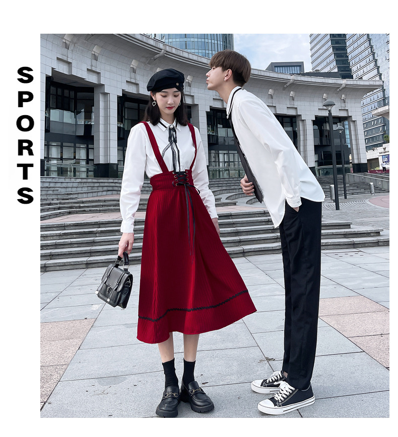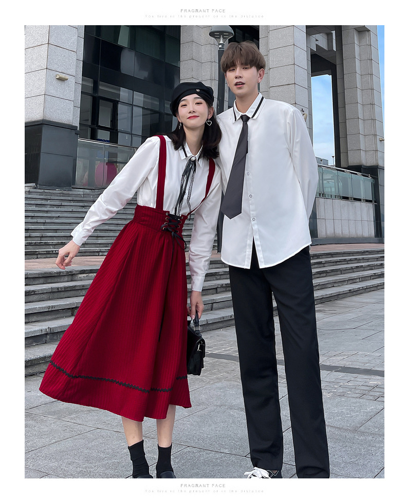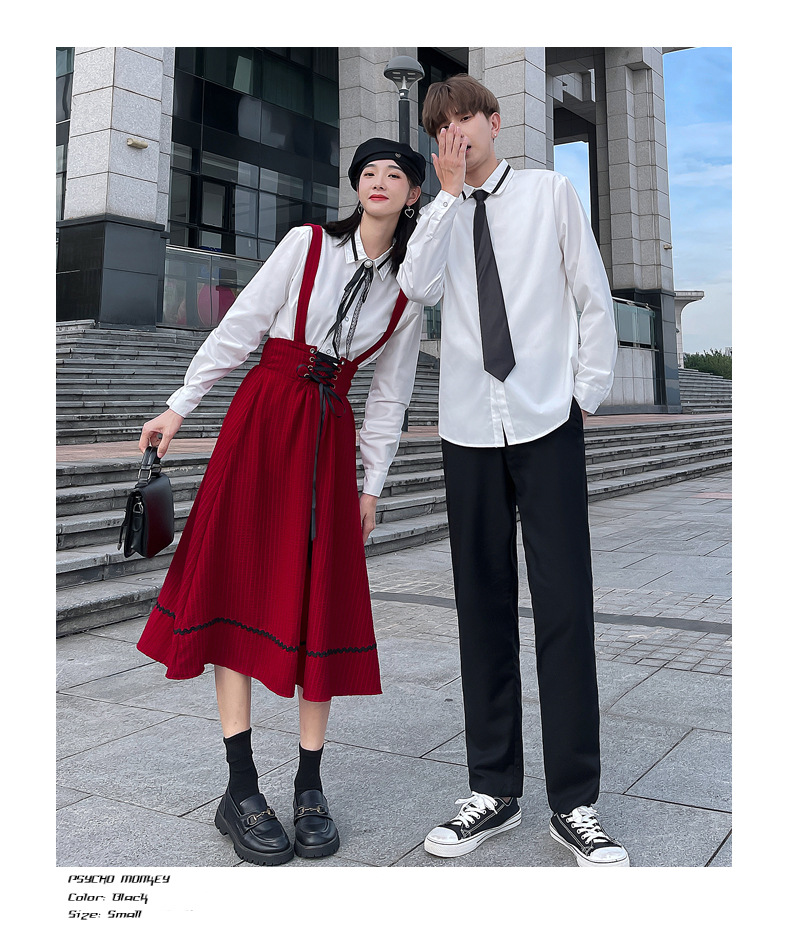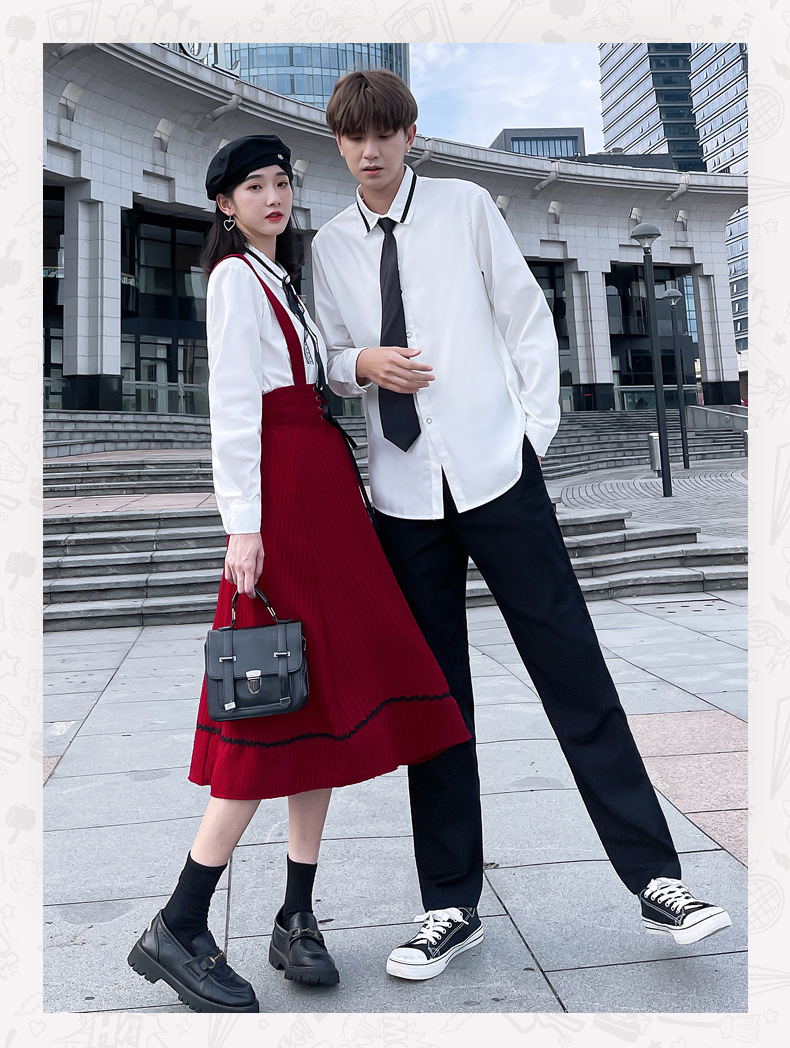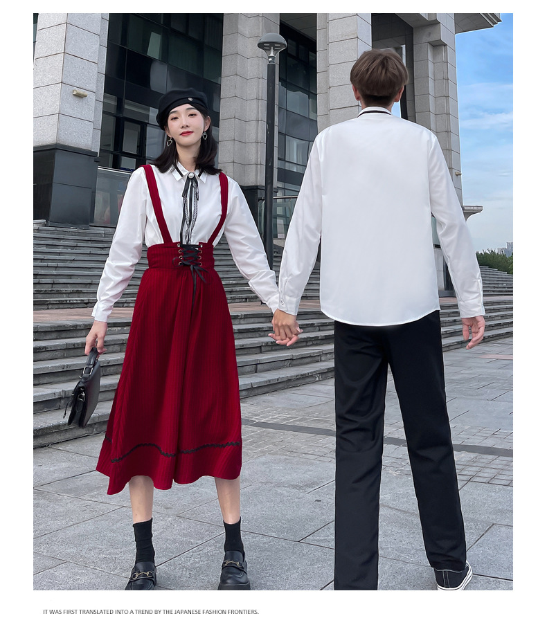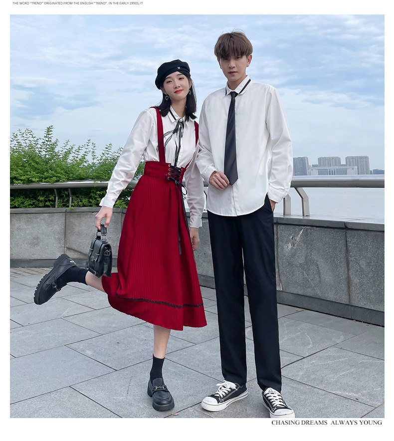 颜色 半身裙 男裤 女衬衣+领结 男是+领带
