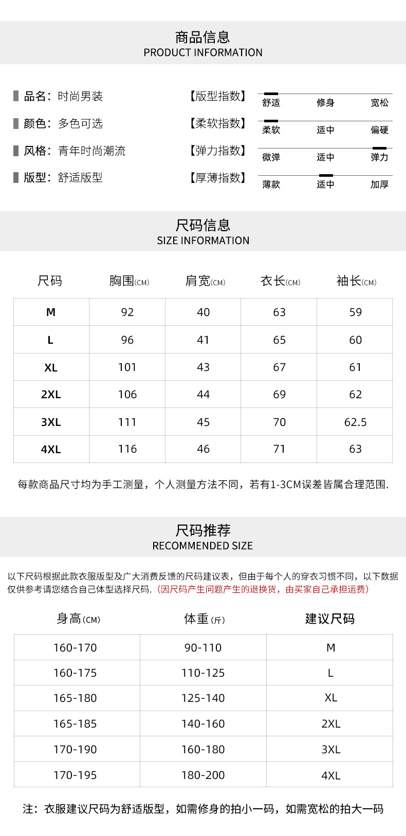 尺码 2XL 3XL L M XL