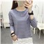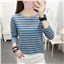 大码宽松长袖T恤女装中老年妈妈条纹打底衫早秋装洋气上衣服