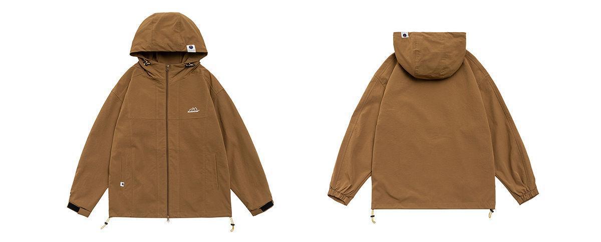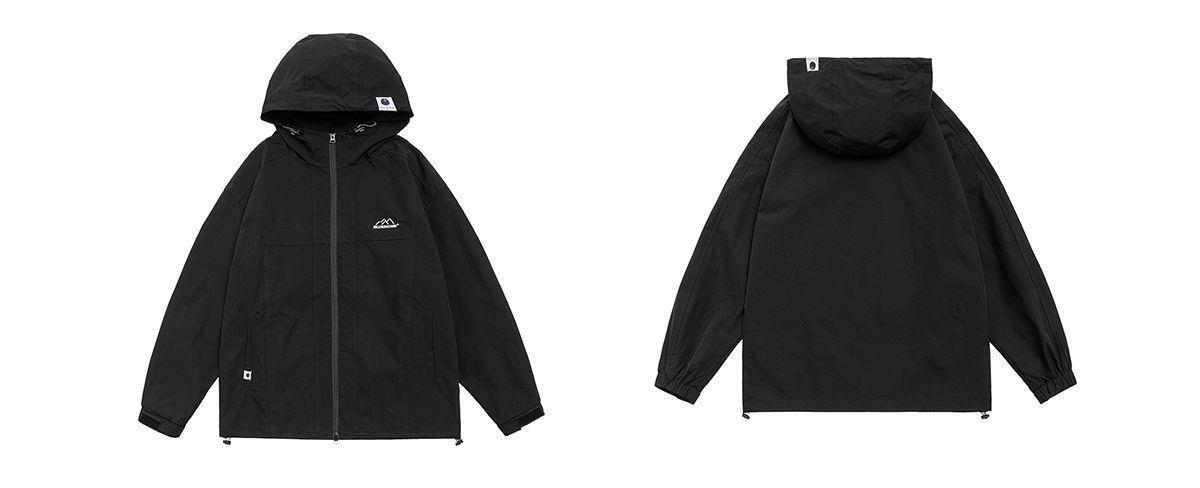 日系潮牌户外连帽冲锋衣BF风宽松夹克男防风透气情侣工装外套男女