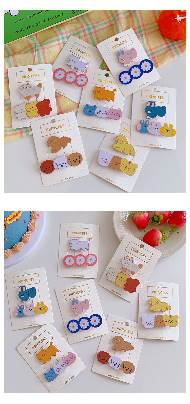 颜色 1#奶狗+泰迪 2#黄猫+猫咪 3#粉兔+蓝花 4#蓝兔+兔头 5#猫咪+小熊 6#奶狗+熊头 7#白猫+粉花 1#·西装狗套装 2#·背带裤套装 3#·狗狗套装 4#·OMG套装 5#·萝卜兔套装 6#·卷毛狗套装 7#·蘑菇狗套装