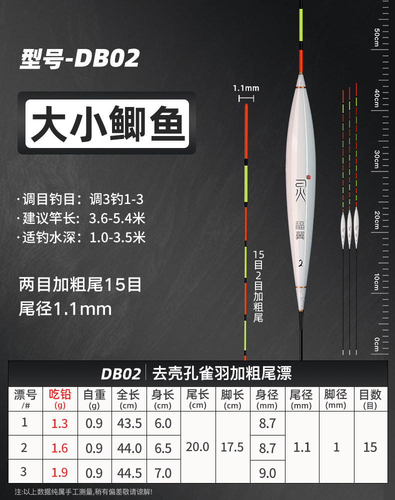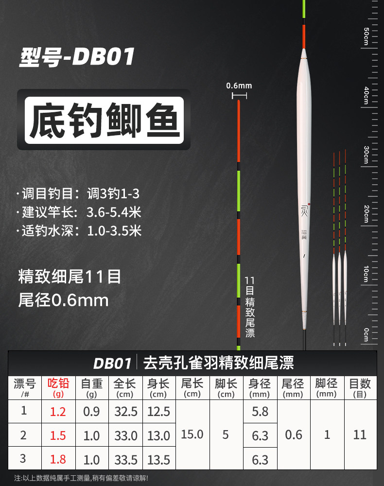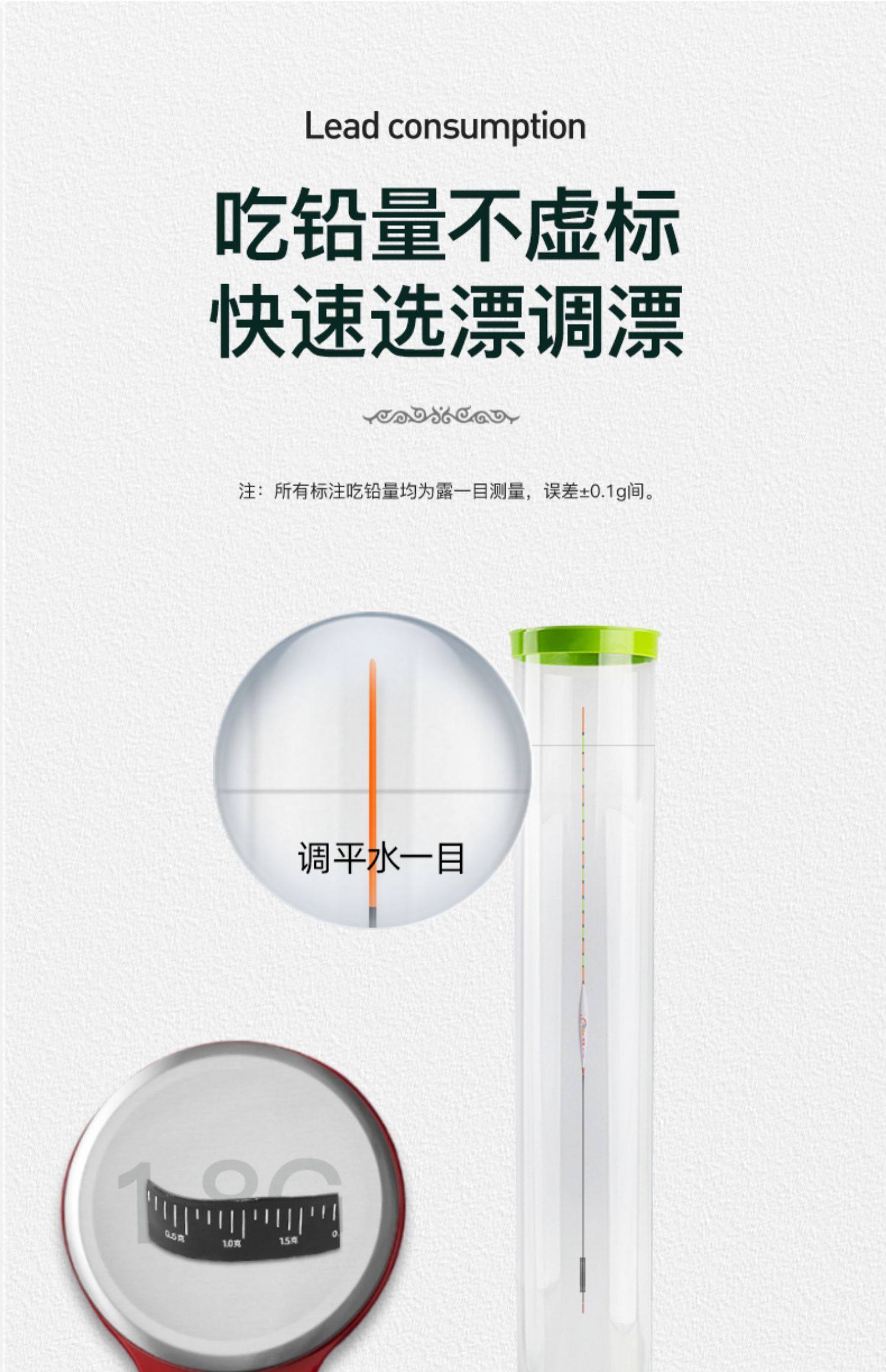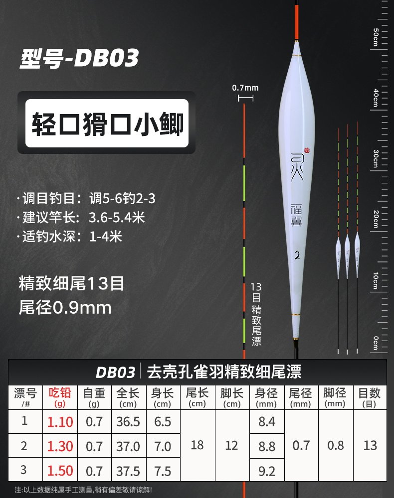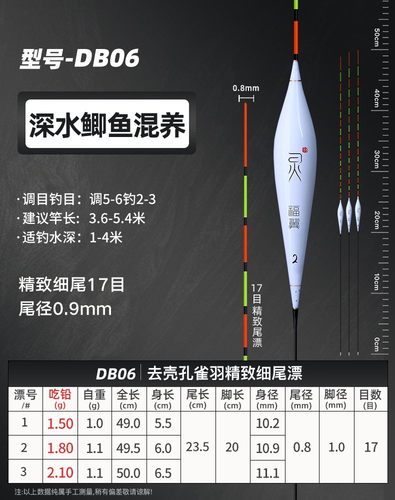 颜色 【新款】孔雀羽CA01_鲫鱼轻口弱口吃铅0.8—1.2G 【新款】孔雀羽DB07_黑坑鲫鲤吃铅2—2.8G 【新款】孔雀羽CA04_鲤鱼行程混养吃铅2.2G—3.2G 【新款】孔雀羽DB02_大小鲫鱼吃铅1.3—1.9G 【新款】孔雀羽CA05_青草鲤鳊吃铅3.3G—4.7G 【新款】孔雀羽DB08_综合混养吃铅2.5—3.4G 【新款】孔雀羽DB10_黑坑鲤鱼吃铅2.5—3.5G 孔雀羽Y09_深水鲫鲤吃铅1.5—2.1G 孔雀翎羽Y08_鲫鱼鲤鱼吃铅2.2—3.0G 【新款】孔雀羽CA03_鲫鲤综合吃铅2.0G—2.8G 【新款】孔雀羽DB09_黑坑鲤鱼吃铅2.0—2.8G 孔雀羽Y03_中小鲫鱼吃铅1.0—1.4G0.5 【新款】孔雀羽CA06_草编翘嘴行程吃铅2.2G—3.2G 【新款】孔雀羽CA02_鲫鱼行程轻口吃铅1.6G—2.2G 【新款】孔雀羽DB06_深水鲫鱼吃铅1.5—2.1G 孔雀翎羽Y12_黑坑鲤鱼吃铅2.0—2.6G 【新款】孔雀羽DB01_鲫鱼罗非吃铅1.2—1.8G 孔雀羽Y05_底钓罗非吃铅2.4—3.0G 孔雀羽Y11_黑坑鲫鲤吃铅2.0—2.6G 【新款】孔雀羽DB03_轻口滑口吃铅1.1—1.5G 孔雀羽Y02_轻口奶鲫吃铅0.6—1.0G 孔雀翎羽Y10_湖库大物吃铅2.9—3.9G 【新款】孔雀羽DB04_鲫鲤混养吃铅1.6—2.4G 孔雀翎羽Y07_鲫鱼鲤鱼吃铅1.7—2.3G