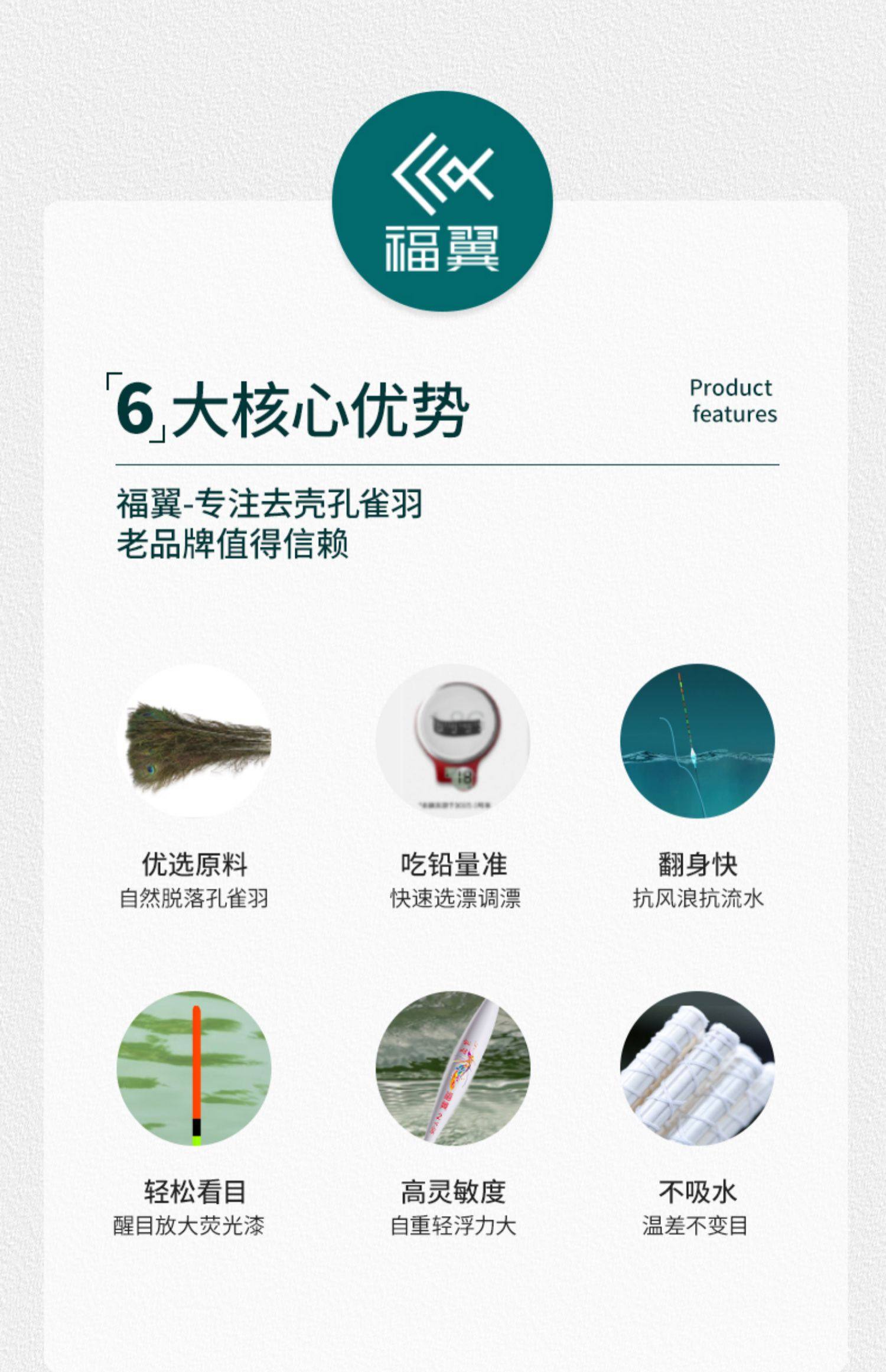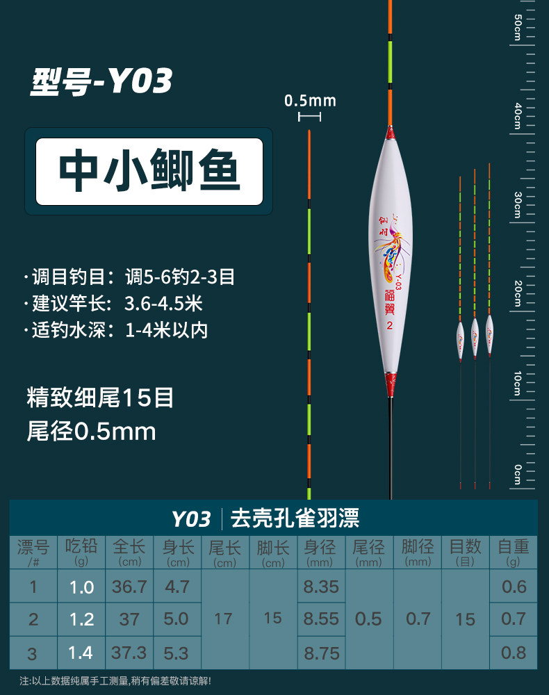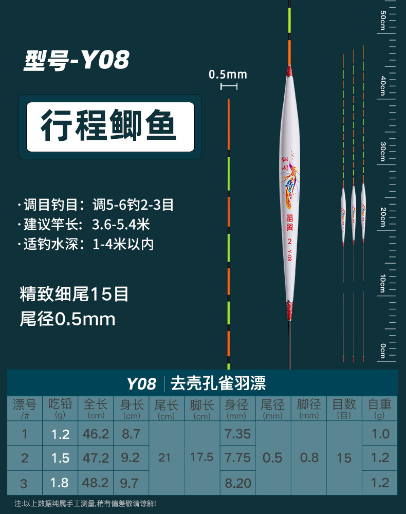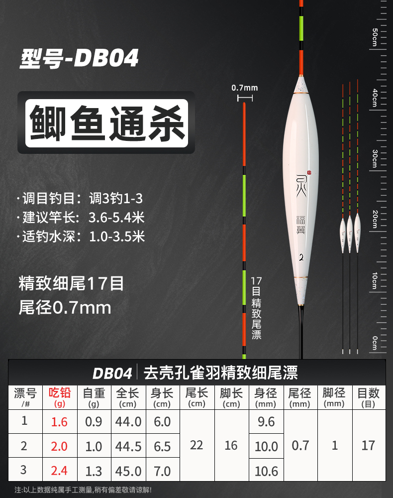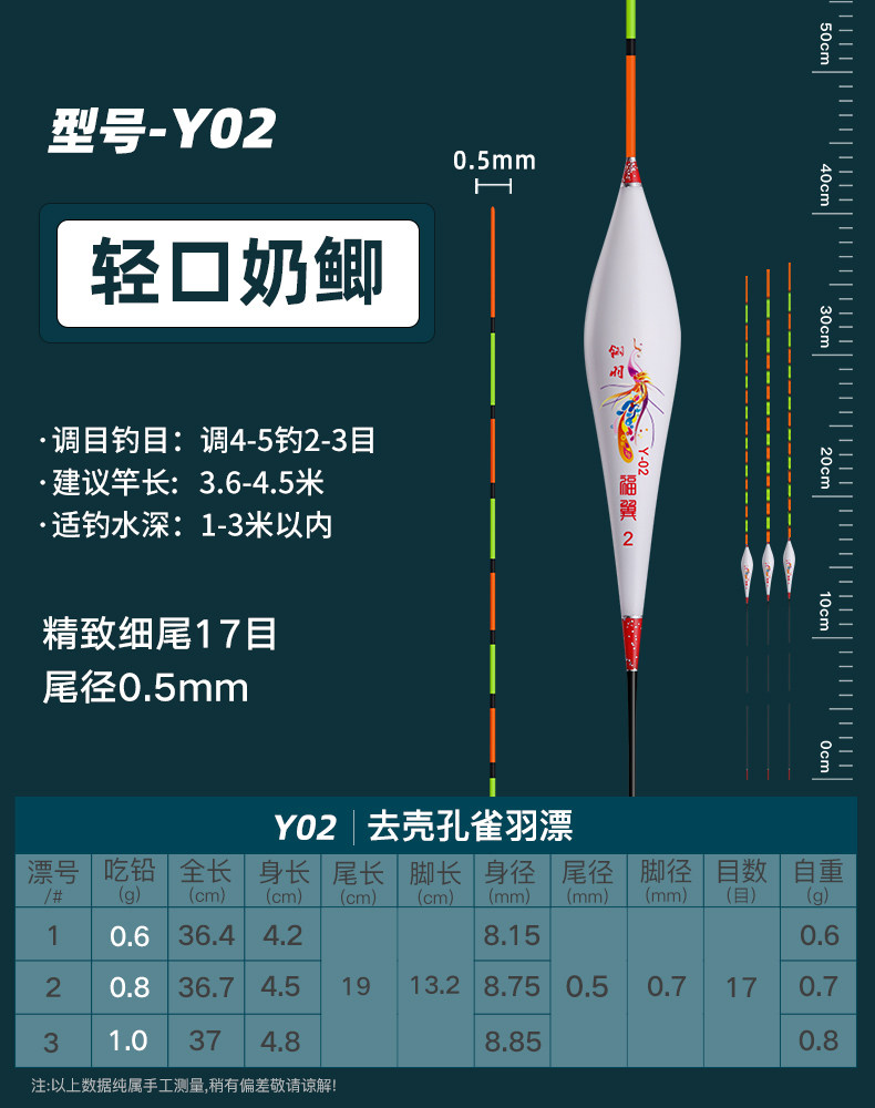 颜色 【新款】孔雀羽CA01_鲫鱼轻口弱口吃铅0.8—1.2G 【新款】孔雀羽DB07_黑坑鲫鲤吃铅2—2.8G 【新款】孔雀羽CA04_鲤鱼行程混养吃铅2.2G—3.2G 【新款】孔雀羽DB02_大小鲫鱼吃铅1.3—1.9G 【新款】孔雀羽CA05_青草鲤鳊吃铅3.3G—4.7G 【新款】孔雀羽DB08_综合混养吃铅2.5—3.4G 【新款】孔雀羽DB10_黑坑鲤鱼吃铅2.5—3.5G 孔雀羽Y09_深水鲫鲤吃铅1.5—2.1G 孔雀翎羽Y08_鲫鱼鲤鱼吃铅2.2—3.0G 【新款】孔雀羽CA03_鲫鲤综合吃铅2.0G—2.8G 【新款】孔雀羽DB09_黑坑鲤鱼吃铅2.0—2.8G 孔雀羽Y03_中小鲫鱼吃铅1.0—1.4G0.5 【新款】孔雀羽CA06_草编翘嘴行程吃铅2.2G—3.2G 【新款】孔雀羽CA02_鲫鱼行程轻口吃铅1.6G—2.2G 【新款】孔雀羽DB06_深水鲫鱼吃铅1.5—2.1G 孔雀翎羽Y12_黑坑鲤鱼吃铅2.0—2.6G 【新款】孔雀羽DB01_鲫鱼罗非吃铅1.2—1.8G 孔雀羽Y05_底钓罗非吃铅2.4—3.0G 孔雀羽Y11_黑坑鲫鲤吃铅2.0—2.6G 【新款】孔雀羽DB03_轻口滑口吃铅1.1—1.5G 孔雀羽Y02_轻口奶鲫吃铅0.6—1.0G 孔雀翎羽Y10_湖库大物吃铅2.9—3.9G 【新款】孔雀羽DB04_鲫鲤混养吃铅1.6—2.4G 孔雀翎羽Y07_鲫鱼鲤鱼吃铅1.7—2.3G