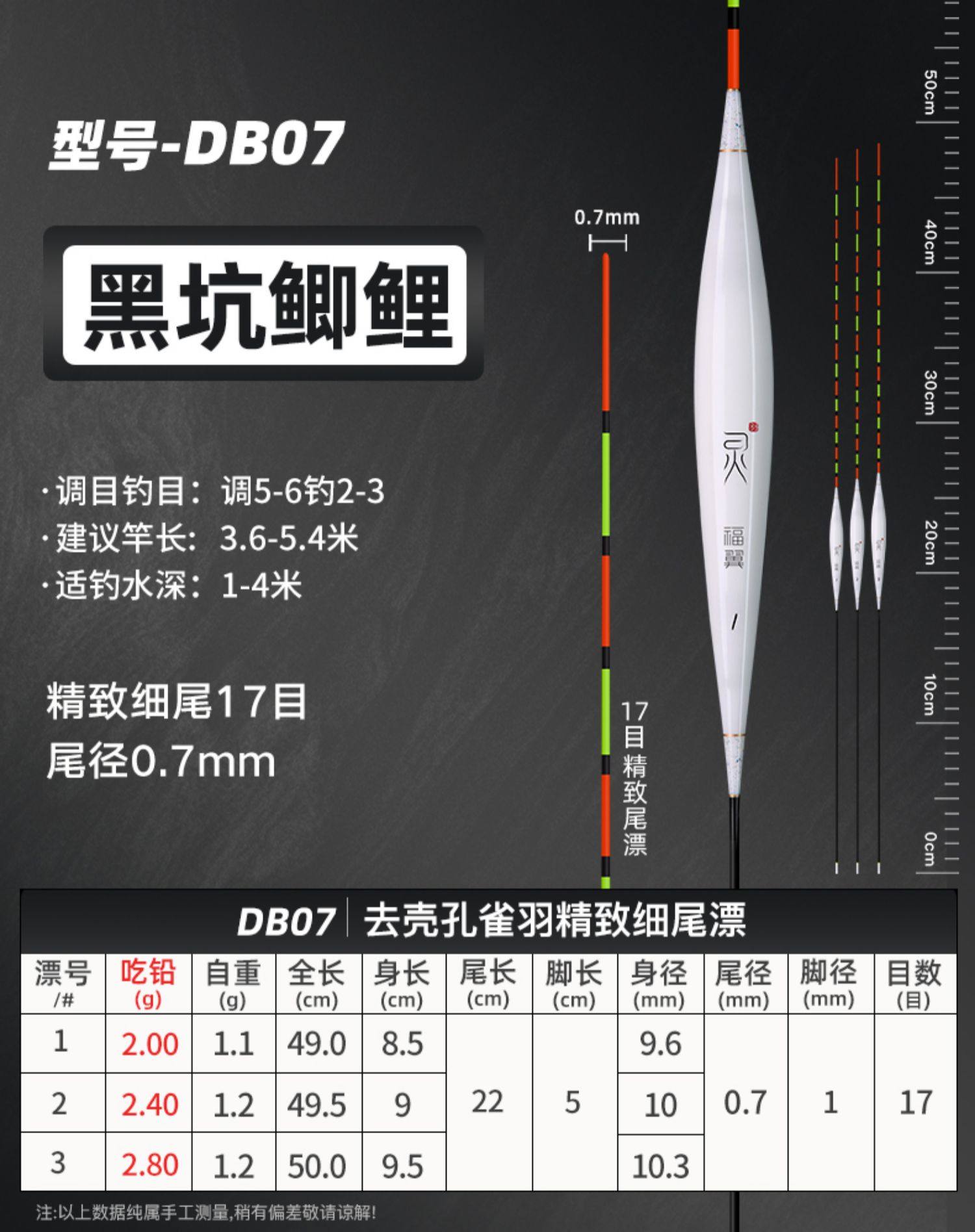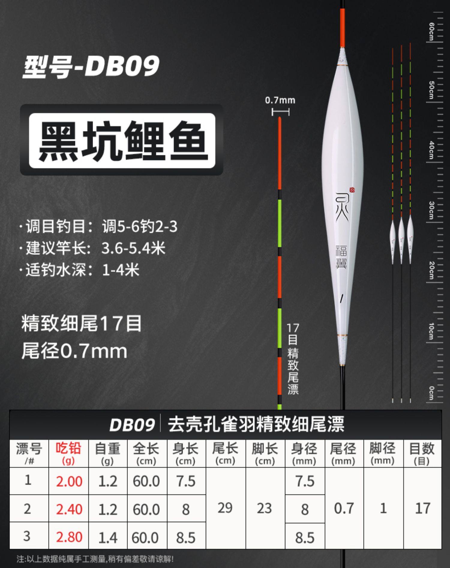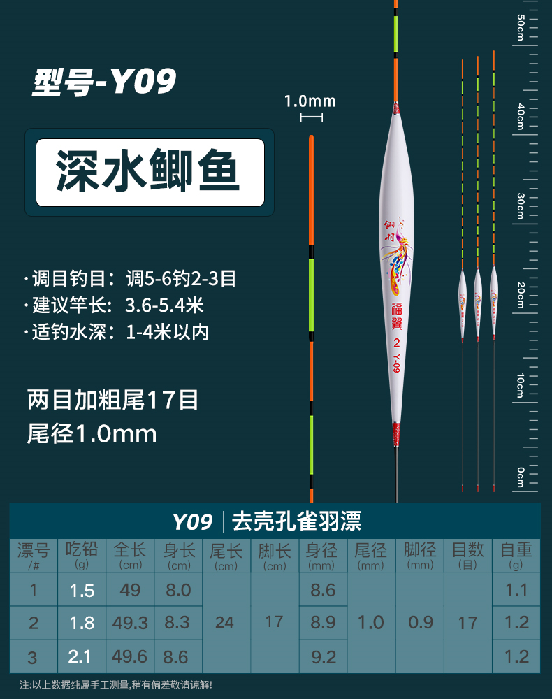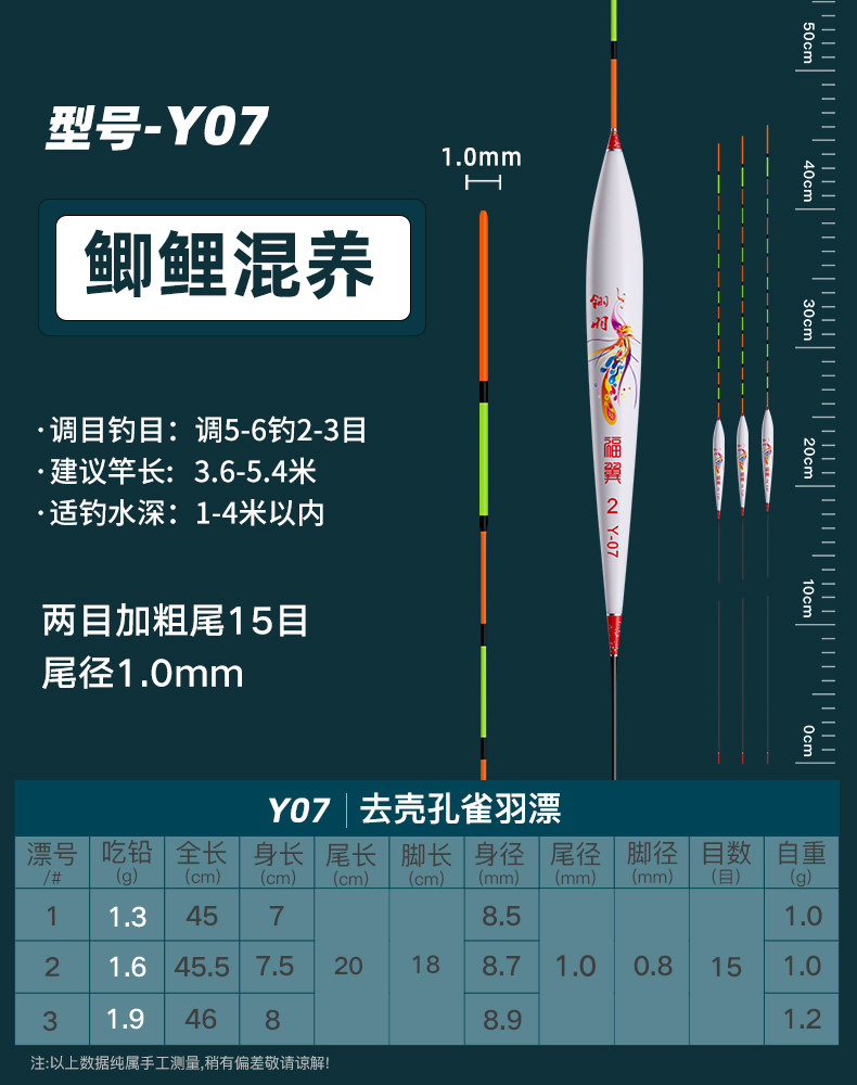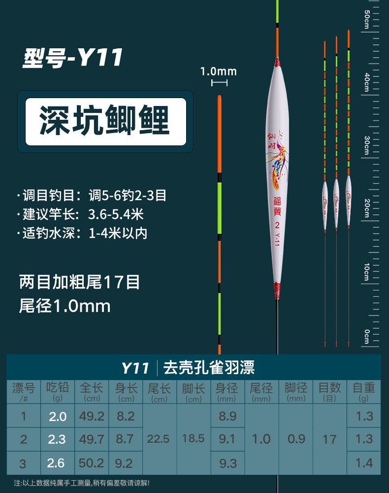 颜色 【新款】孔雀羽CA01_鲫鱼轻口弱口吃铅0.8—1.2G 【新款】孔雀羽DB07_黑坑鲫鲤吃铅2—2.8G 【新款】孔雀羽CA04_鲤鱼行程混养吃铅2.2G—3.2G 【新款】孔雀羽DB02_大小鲫鱼吃铅1.3—1.9G 【新款】孔雀羽CA05_青草鲤鳊吃铅3.3G—4.7G 【新款】孔雀羽DB08_综合混养吃铅2.5—3.4G 【新款】孔雀羽DB10_黑坑鲤鱼吃铅2.5—3.5G 孔雀羽Y09_深水鲫鲤吃铅1.5—2.1G 孔雀翎羽Y08_鲫鱼鲤鱼吃铅2.2—3.0G 【新款】孔雀羽CA03_鲫鲤综合吃铅2.0G—2.8G 【新款】孔雀羽DB09_黑坑鲤鱼吃铅2.0—2.8G 孔雀羽Y03_中小鲫鱼吃铅1.0—1.4G0.5 【新款】孔雀羽CA06_草编翘嘴行程吃铅2.2G—3.2G 【新款】孔雀羽CA02_鲫鱼行程轻口吃铅1.6G—2.2G 【新款】孔雀羽DB06_深水鲫鱼吃铅1.5—2.1G 孔雀翎羽Y12_黑坑鲤鱼吃铅2.0—2.6G 【新款】孔雀羽DB01_鲫鱼罗非吃铅1.2—1.8G 孔雀羽Y05_底钓罗非吃铅2.4—3.0G 孔雀羽Y11_黑坑鲫鲤吃铅2.0—2.6G 【新款】孔雀羽DB03_轻口滑口吃铅1.1—1.5G 孔雀羽Y02_轻口奶鲫吃铅0.6—1.0G 孔雀翎羽Y10_湖库大物吃铅2.9—3.9G 【新款】孔雀羽DB04_鲫鲤混养吃铅1.6—2.4G 孔雀翎羽Y07_鲫鱼鲤鱼吃铅1.7—2.3G