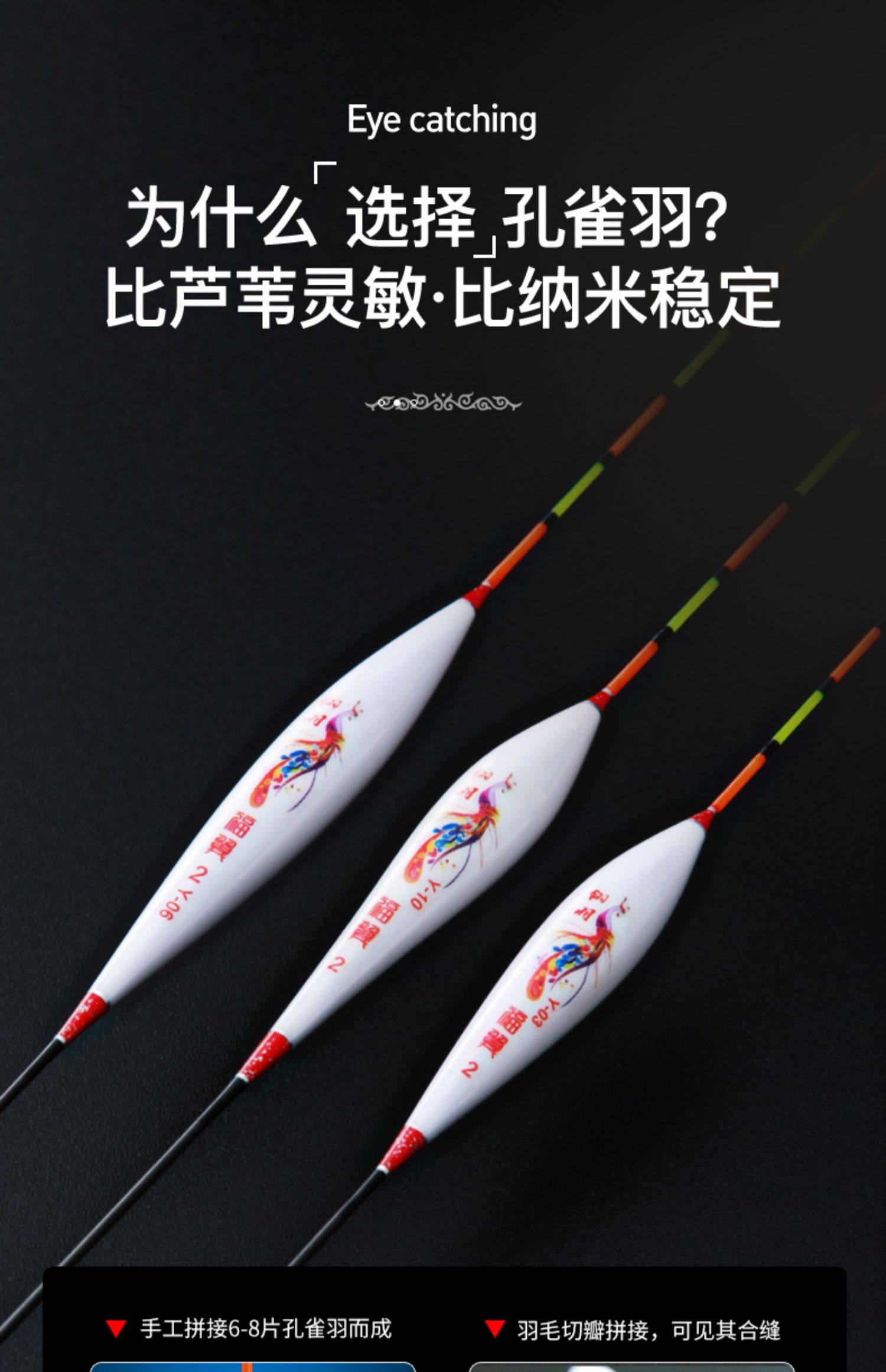 福翼孔雀羽鱼漂高灵敏轻口鲫鱼漂加粗醒目滑口底钓羽毛浮漂