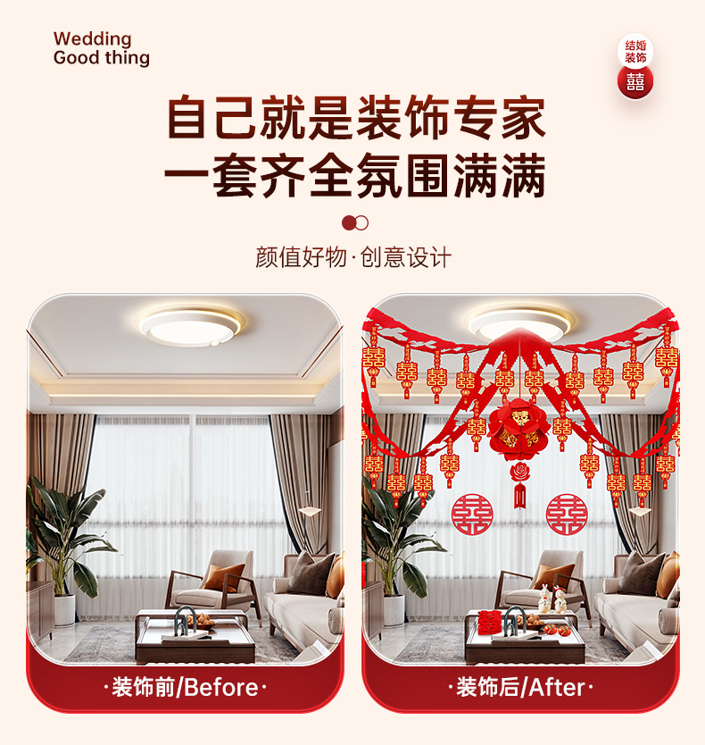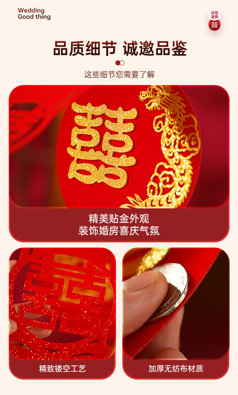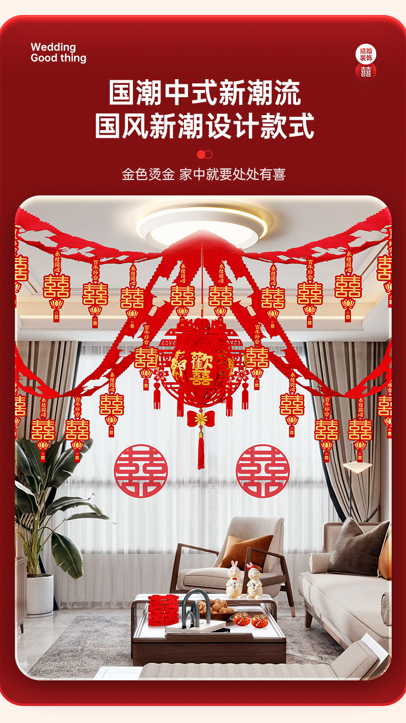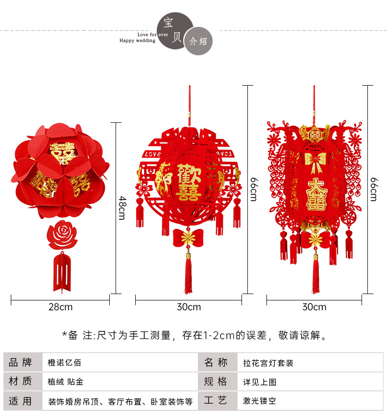 烫金方喜拉花4条+欢喜宫灯