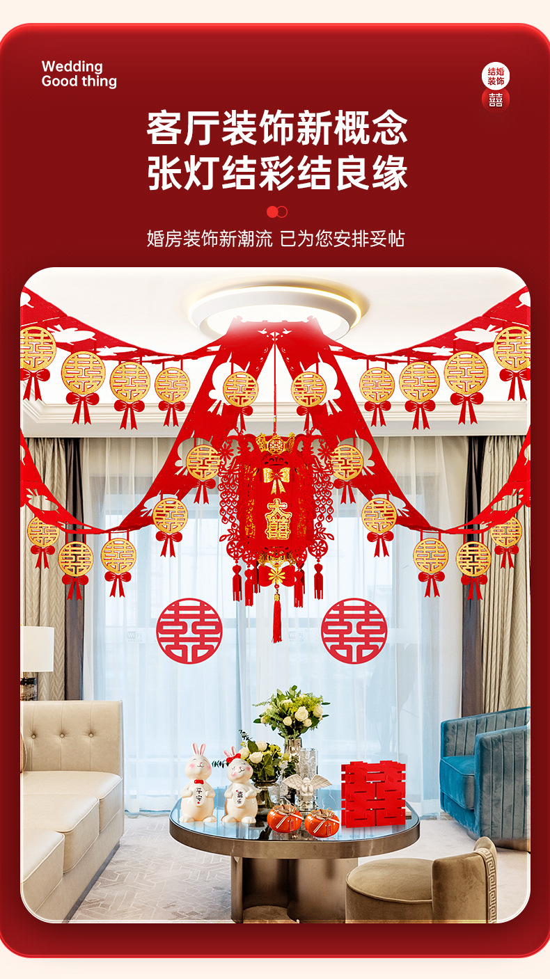 大喜日子拉花4条+大喜宫灯