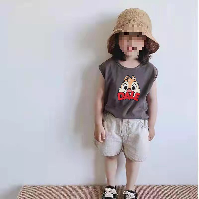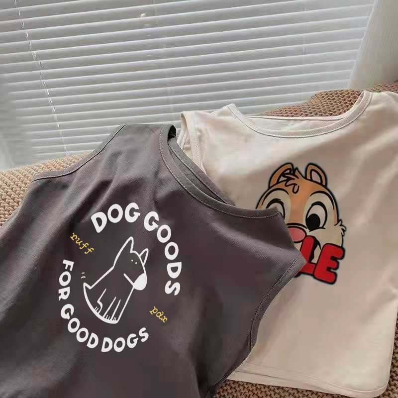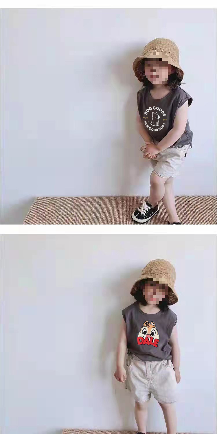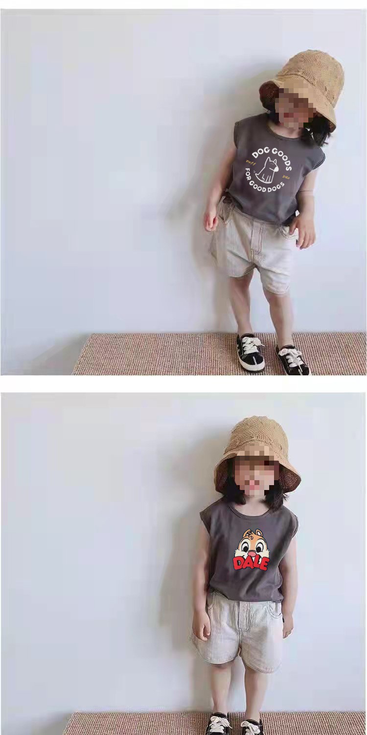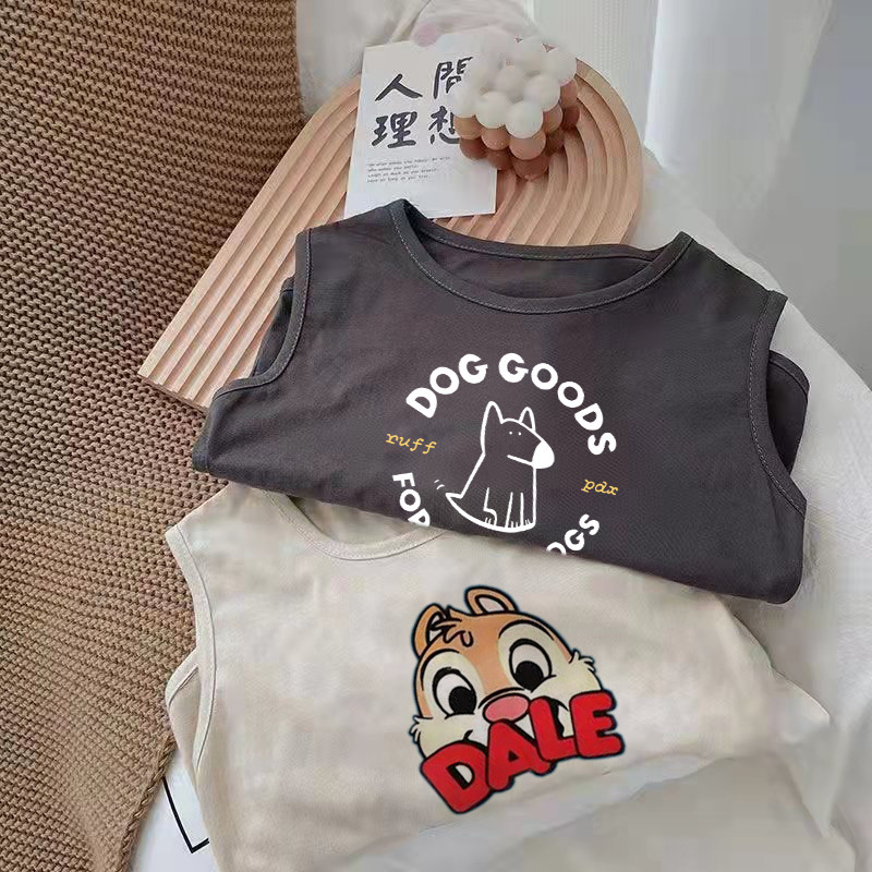 颜色 深灰色精梳纯棉PDX小狗无袖T恤 浅杏色精梳纯棉DALE松鼠无袖T恤 深灰色精梳纯棉DALE松鼠无袖T恤 浅杏色无袖T恤