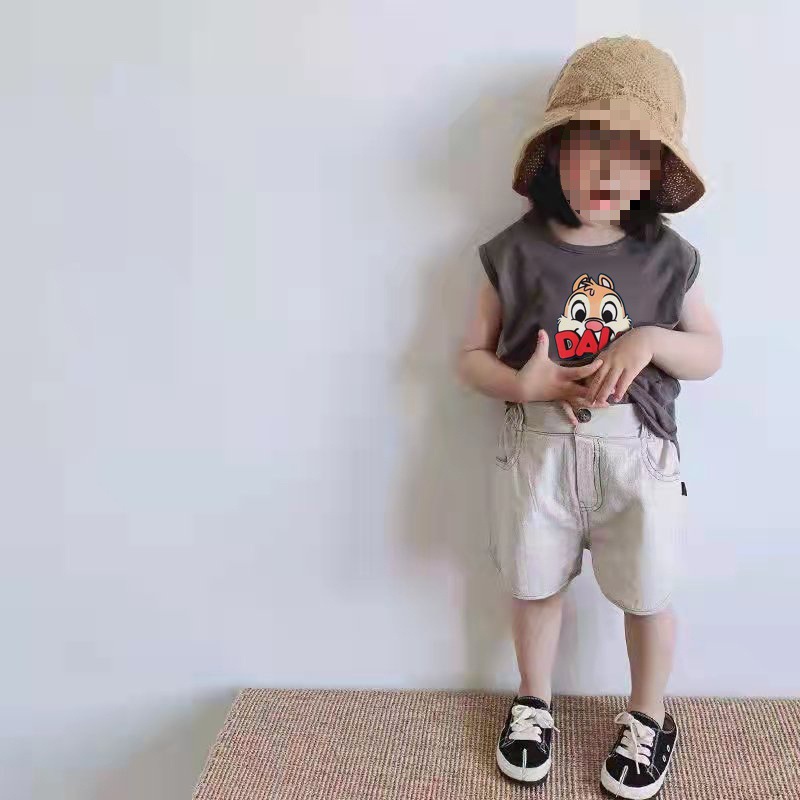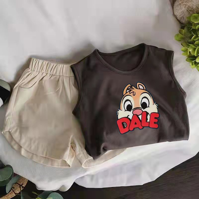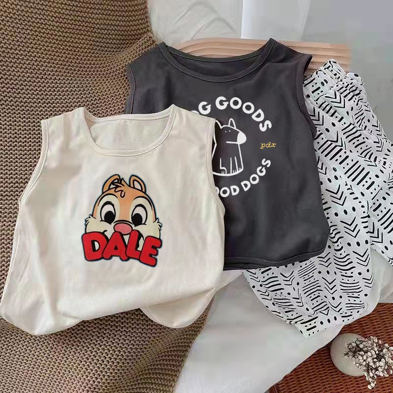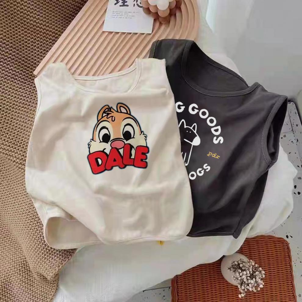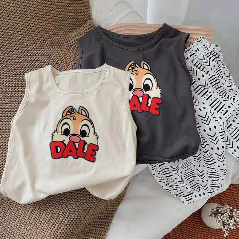 颜色 深灰色精梳纯棉PDX小狗无袖T恤 浅杏色精梳纯棉DALE松鼠无袖T恤 深灰色精梳纯棉DALE松鼠无袖T恤 浅杏色无袖T恤