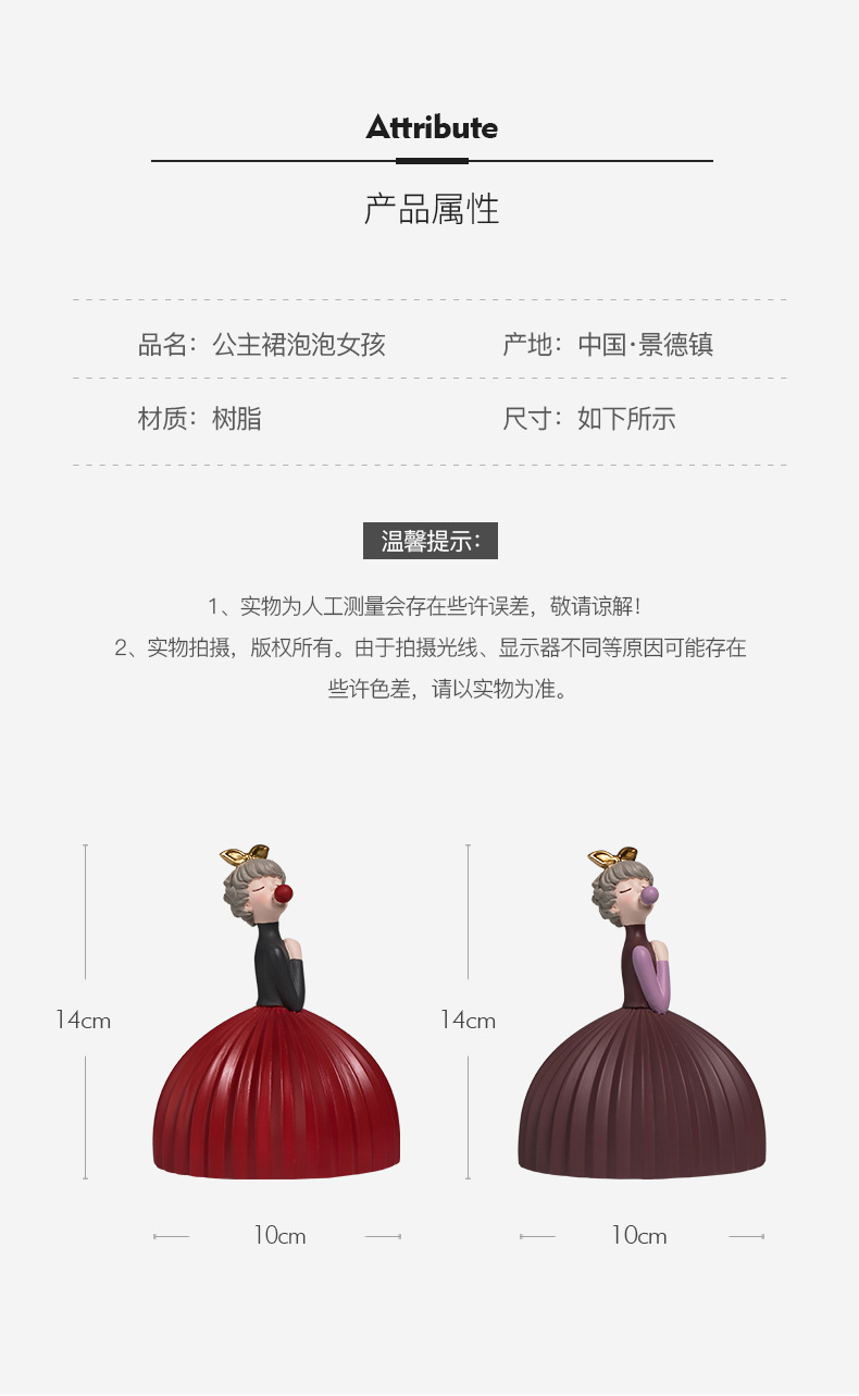 品牌:?BHM 贝汉美功能: 装饰品材质:?树脂风格:?北欧风格产地:?中国大陆省份:?江西省适用空间:?卧室颜色分类:?公主裙女孩-红裙?公主裙女孩-紫裙 蓝裙泡泡女孩?橙裙泡泡女孩?蓝点泡泡女孩适用节日:?圣诞节包装方式:?其他是否可定制:?否货号:?20200818适用场景:?日常送礼适用对象:?朋友外观造型:?人物