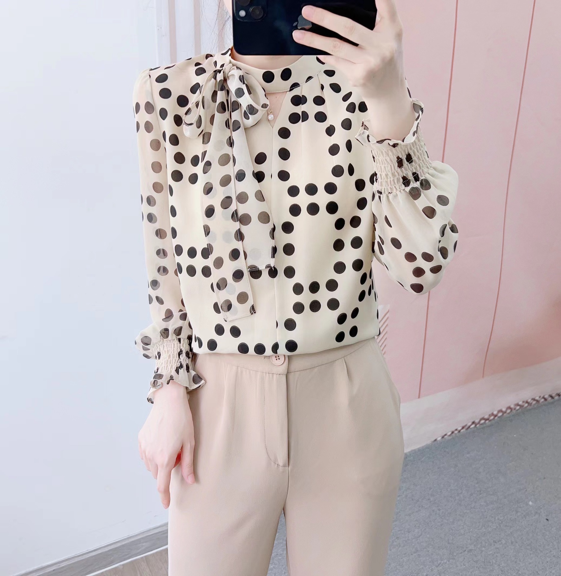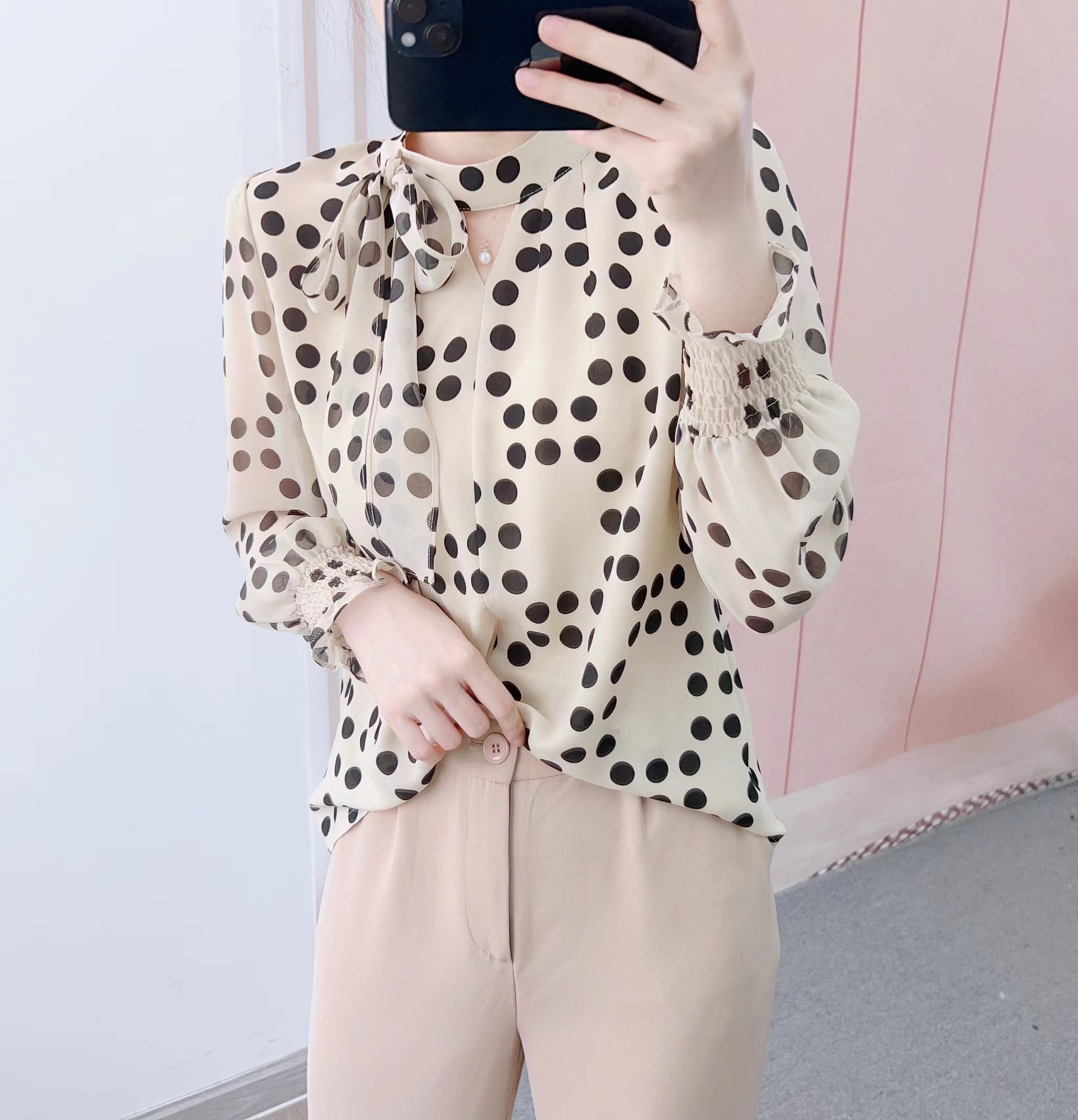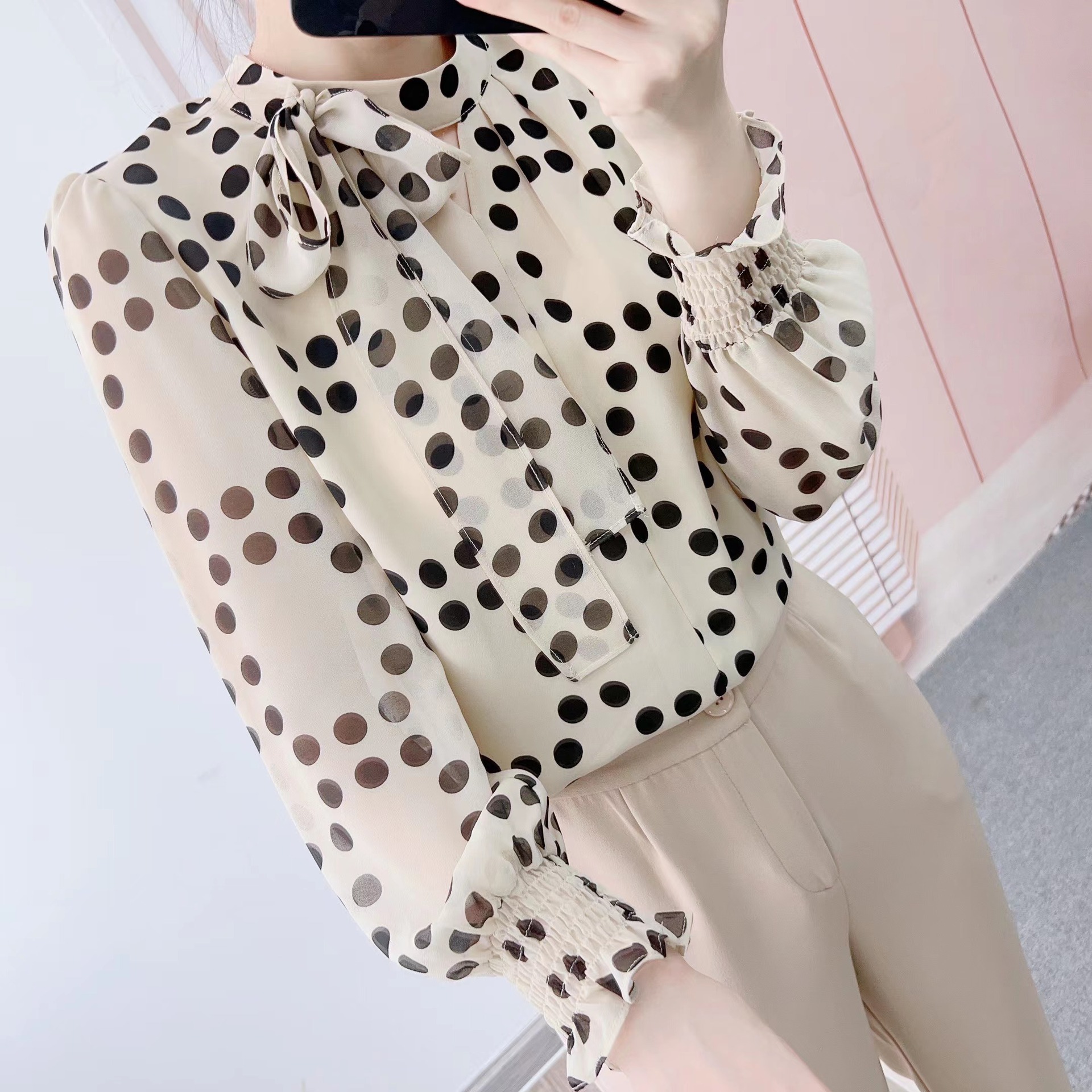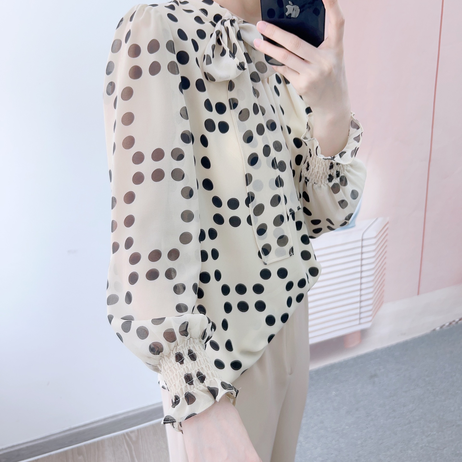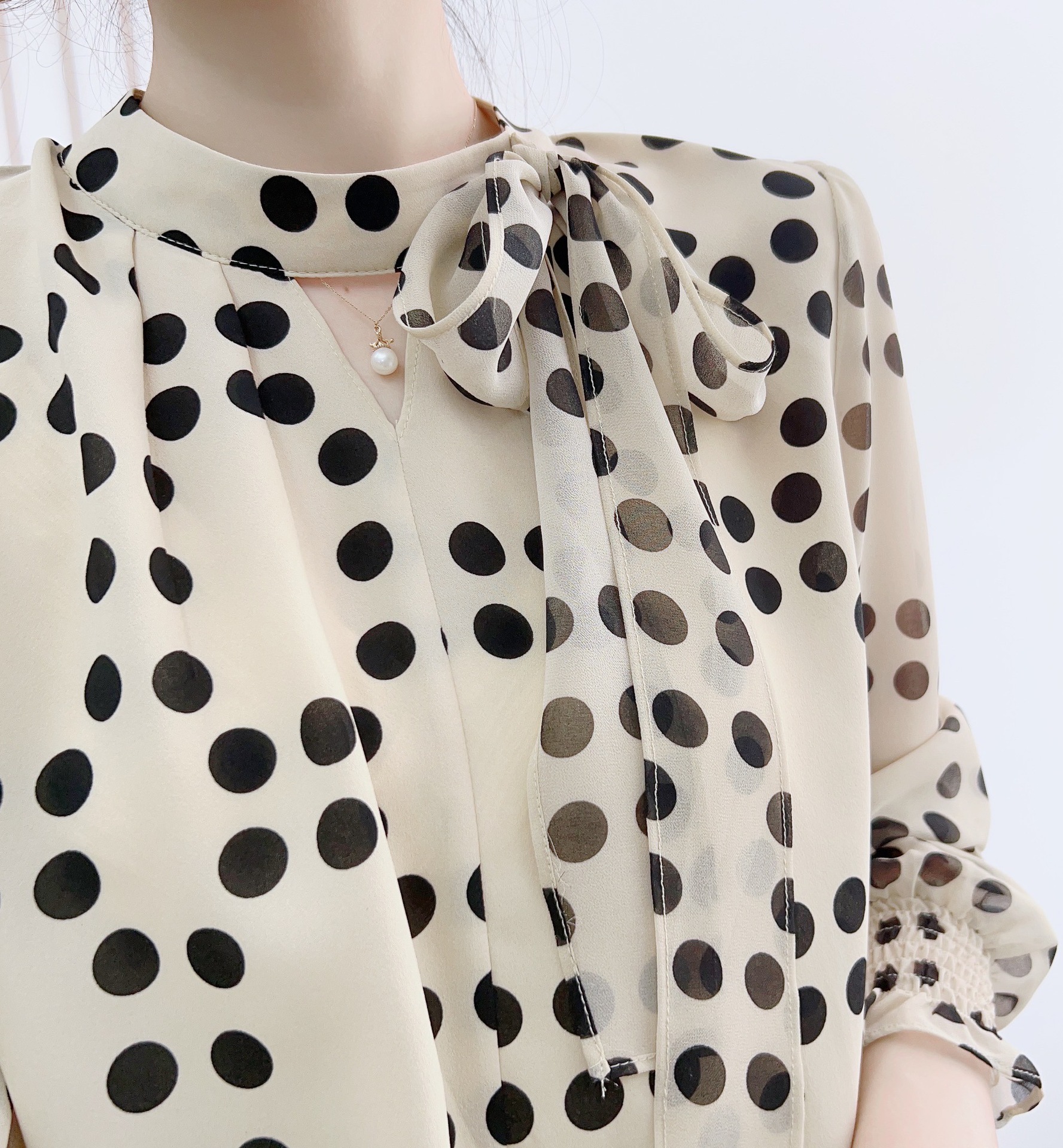 货号:1016波点飘带衫GP