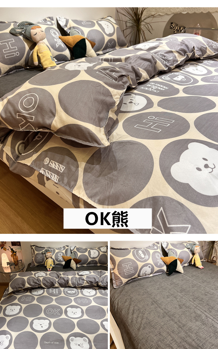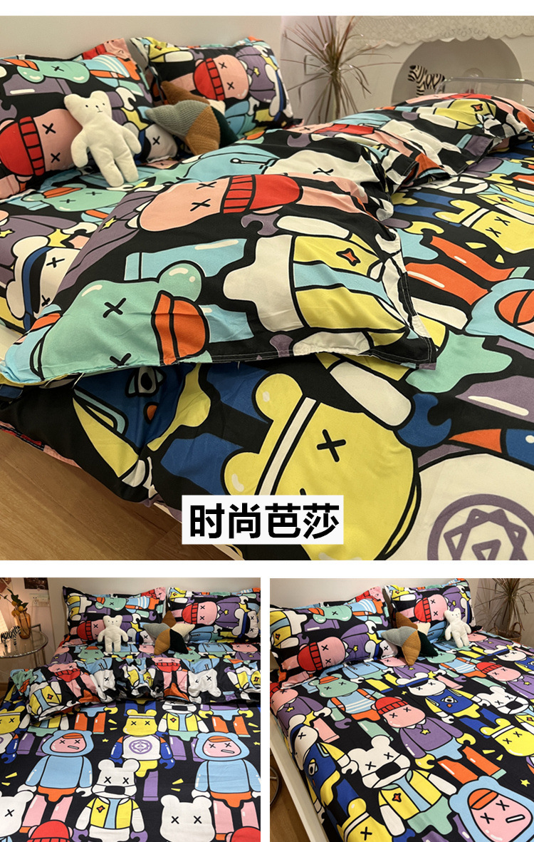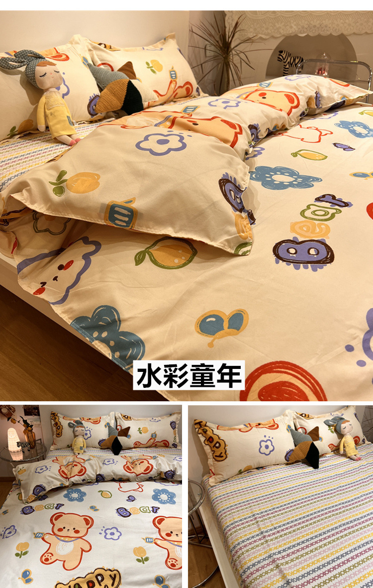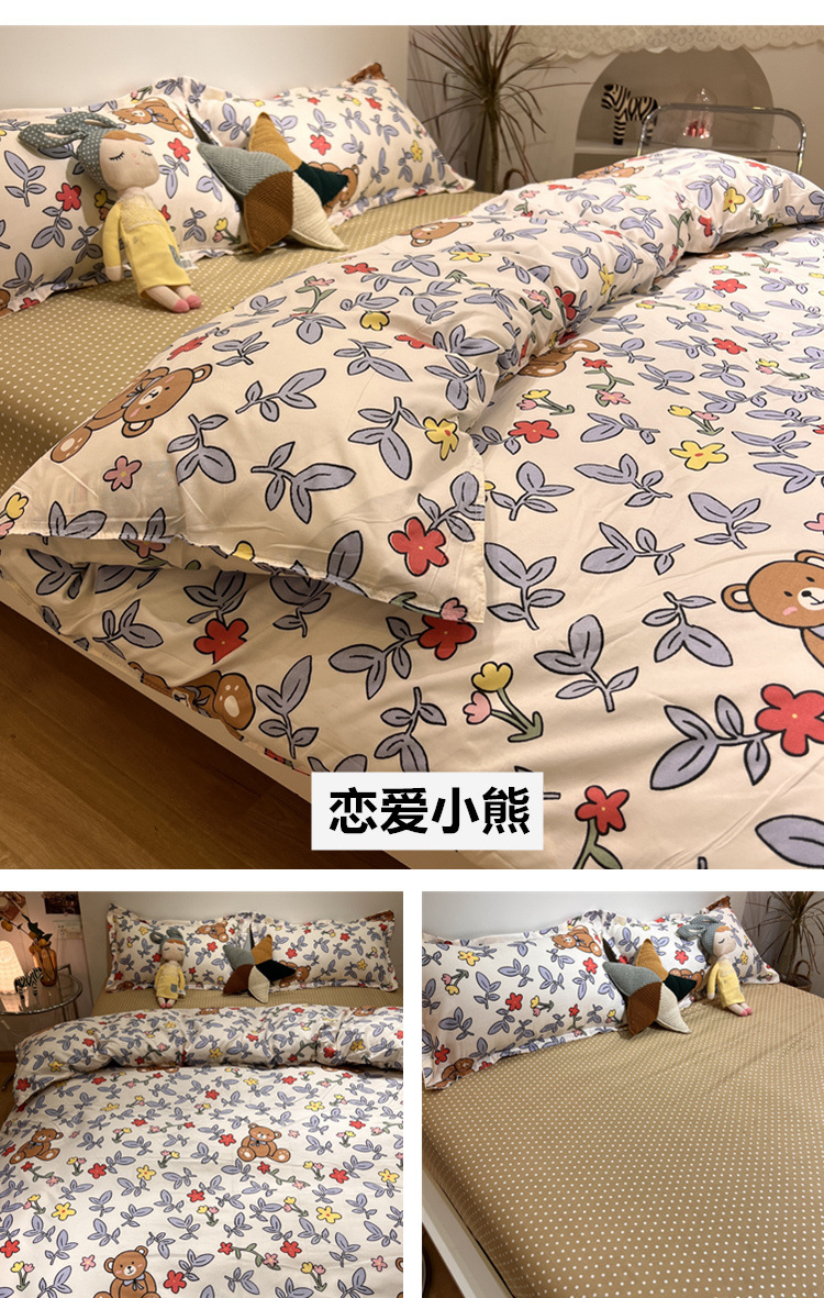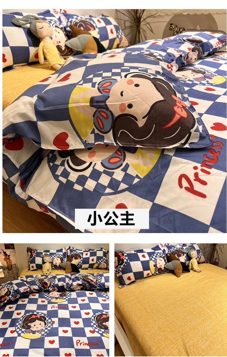 尺码 1.2米三件套(宿舍床) 1.5米四件套(被套150*200) 1.8米四件套(被套180*220) 2.0米四件套(被套200*230) 2.2米四件套(被套220*240)
