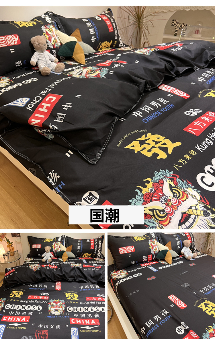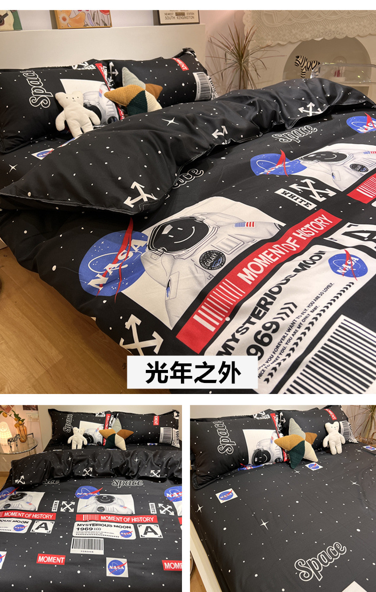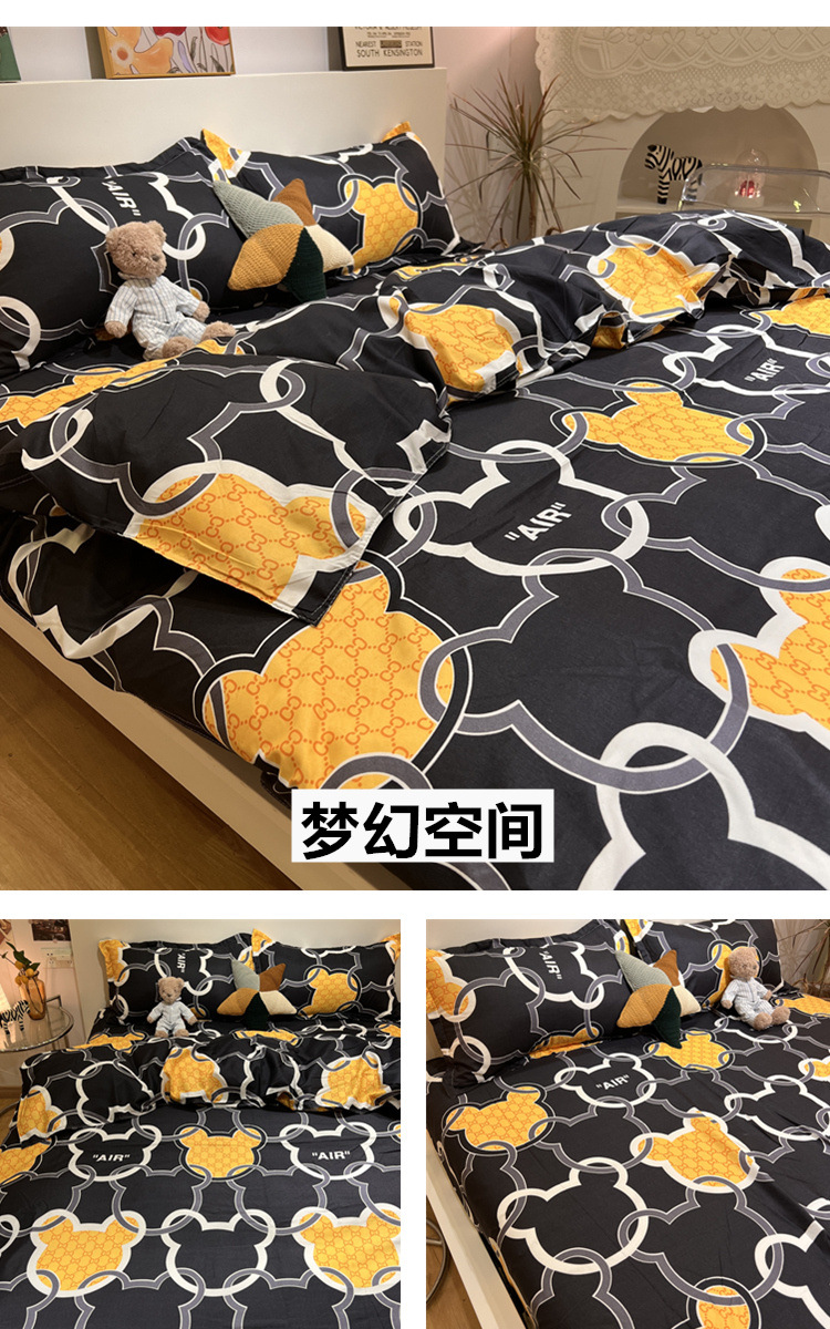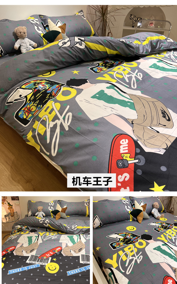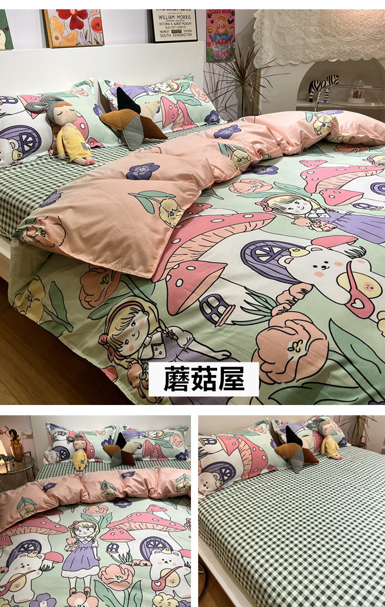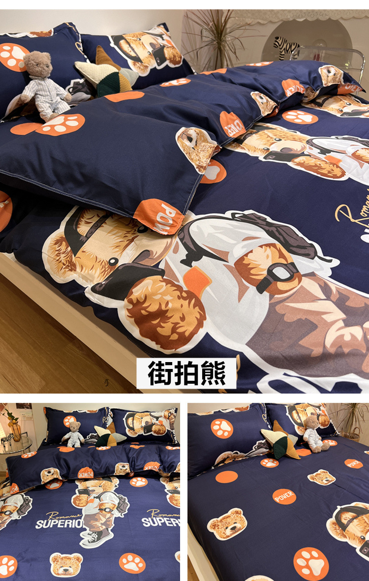 尺码 1.2米三件套(宿舍床) 1.5米四件套(被套150*200) 1.8米四件套(被套180*220) 2.0米四件套(被套200*230) 2.2米四件套(被套220*240)
