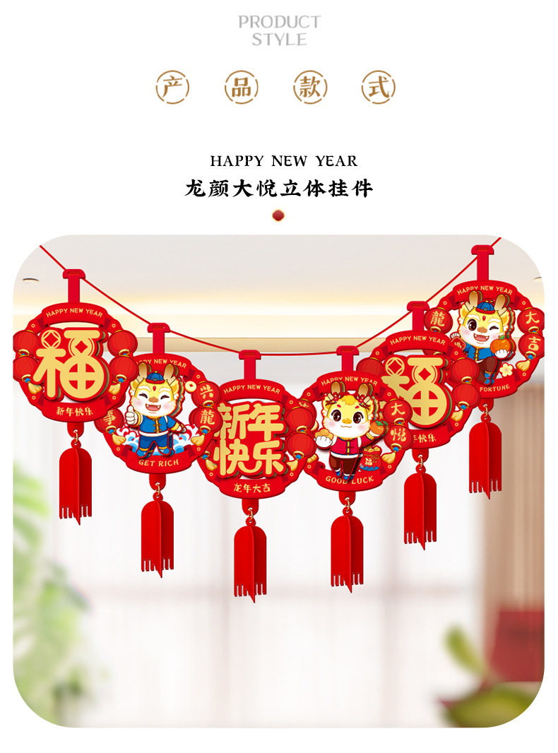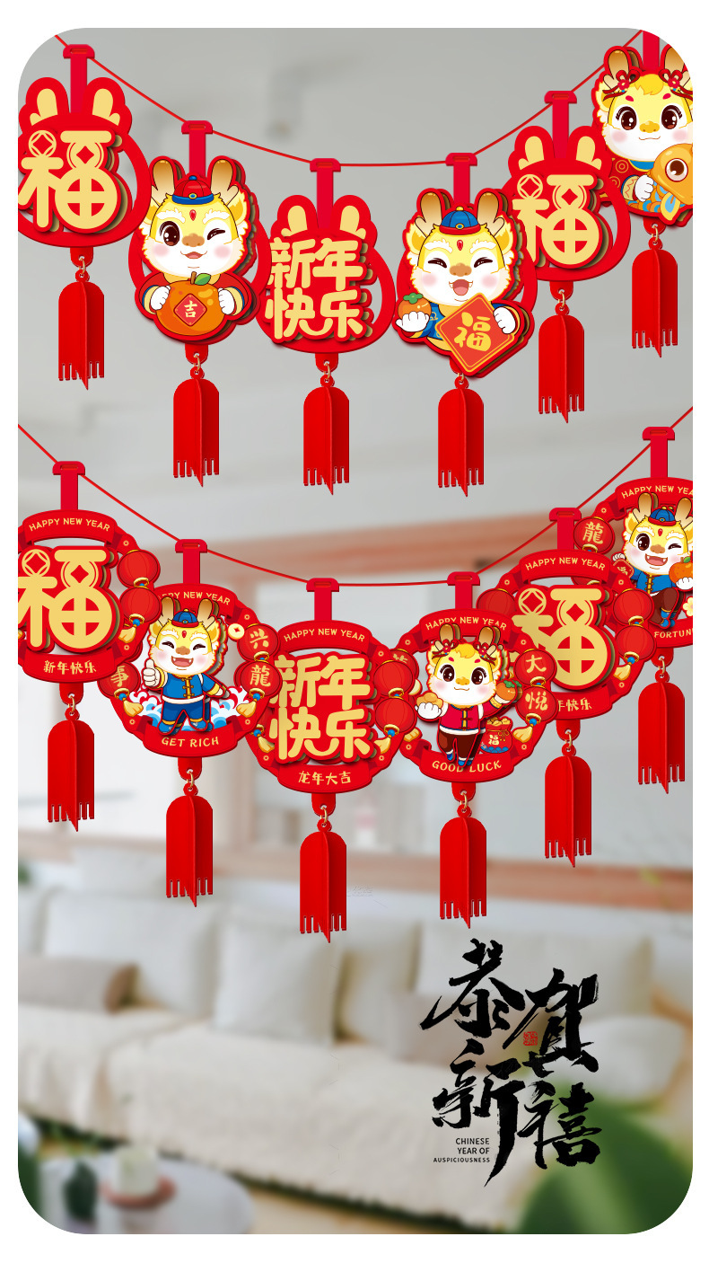 新年拉花挂饰2024龙年过年装饰品春节客厅卧室福字布置喜庆小挂件