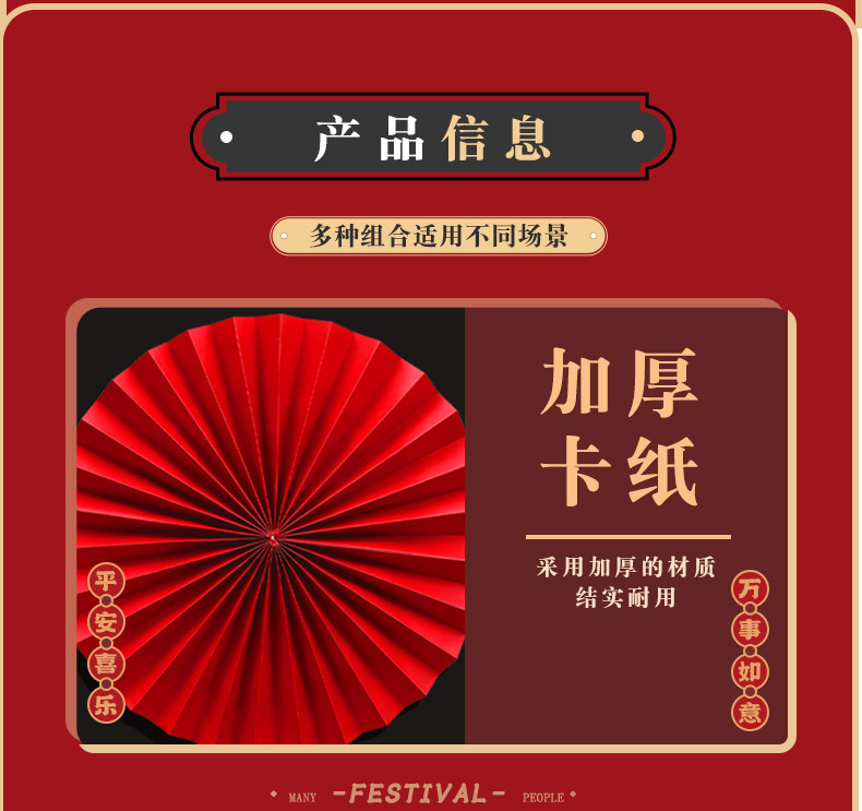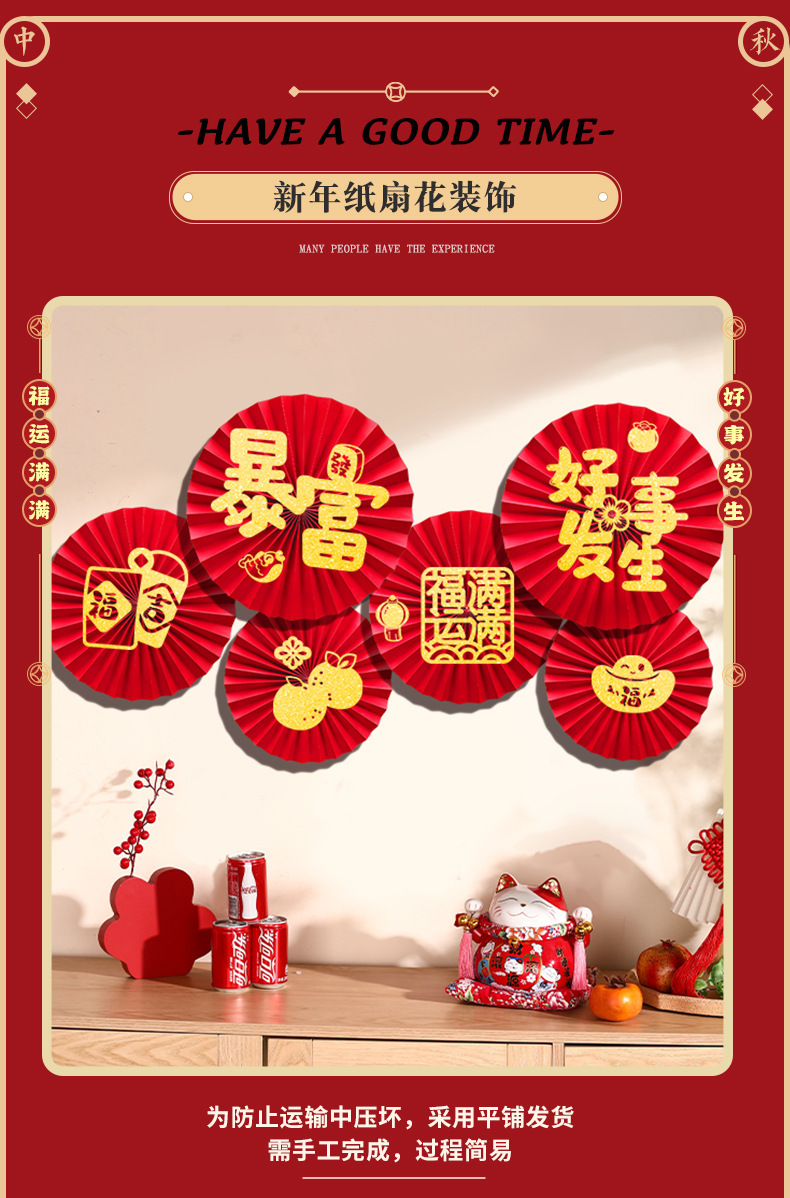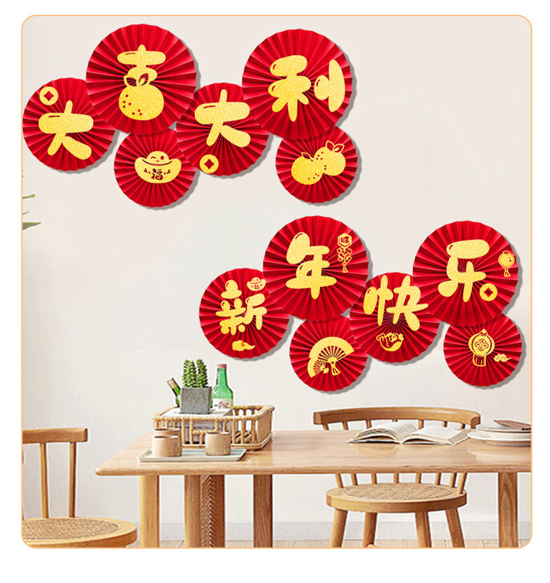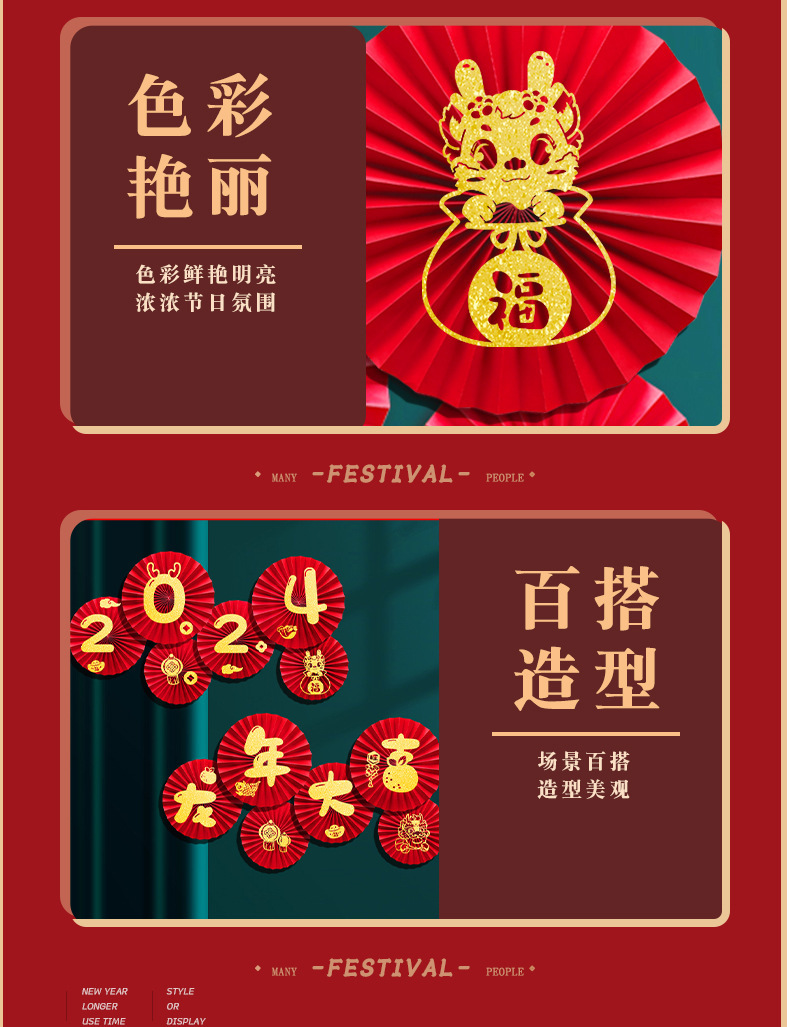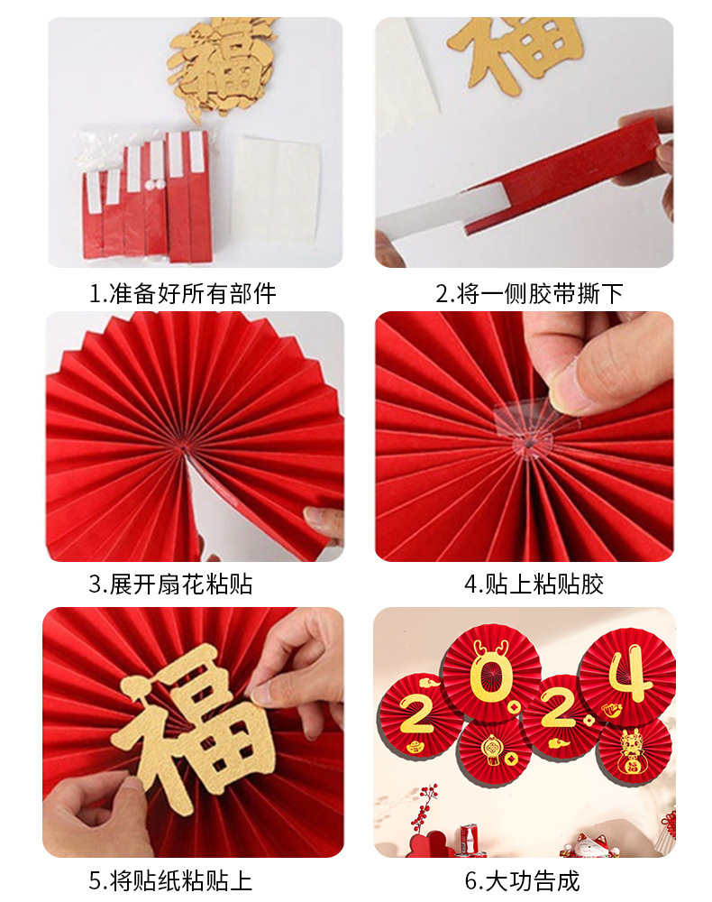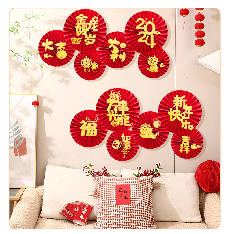 龙年2024新年春节挂饰过年元旦商场挂件店铺纸扇花背景墙节日装饰