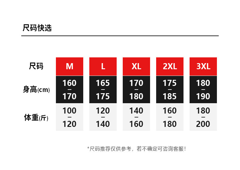 尺码 2XL 3XL L M XL