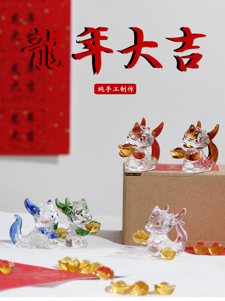 2024新年龙年礼物龙玩偶琉璃摆件手工制作工艺品装饰吉祥物文创