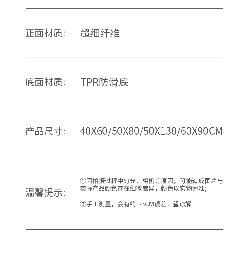 尺码 40*60cm 50*130CM 50*80CM 60*90CM