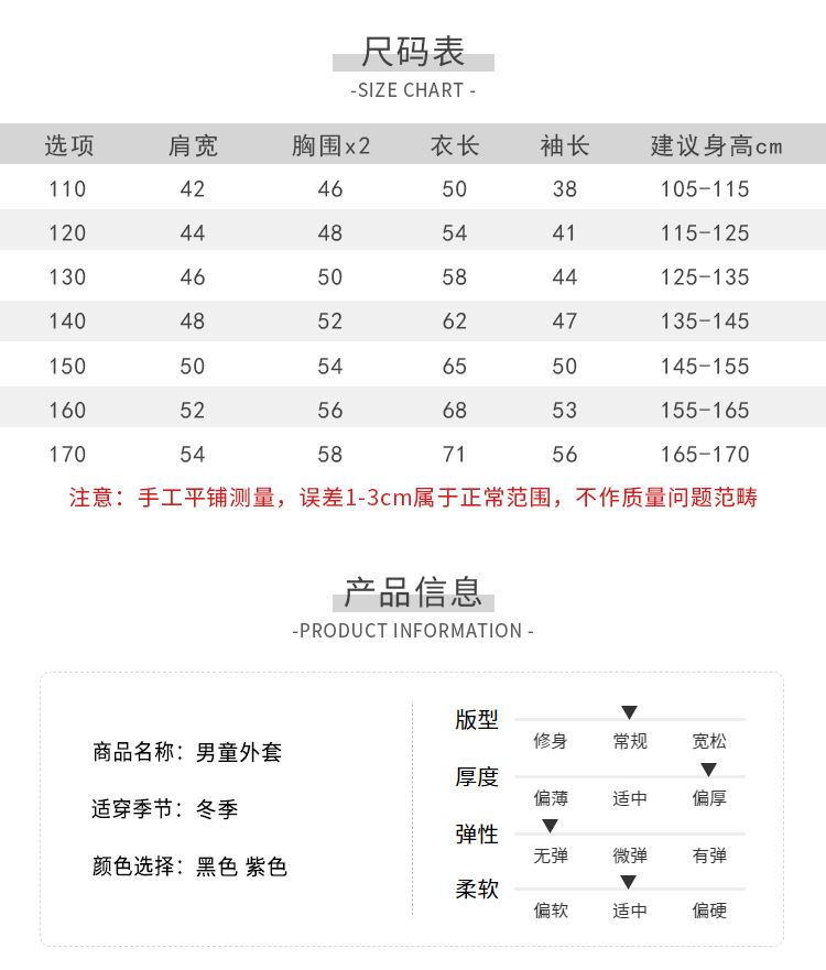 尺码 110cm 120cm 130cm 140cm 150cm 160cm 170CM