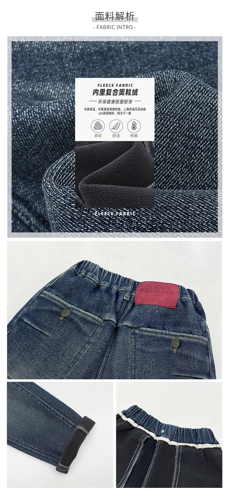 裤门襟:皮筋腰带