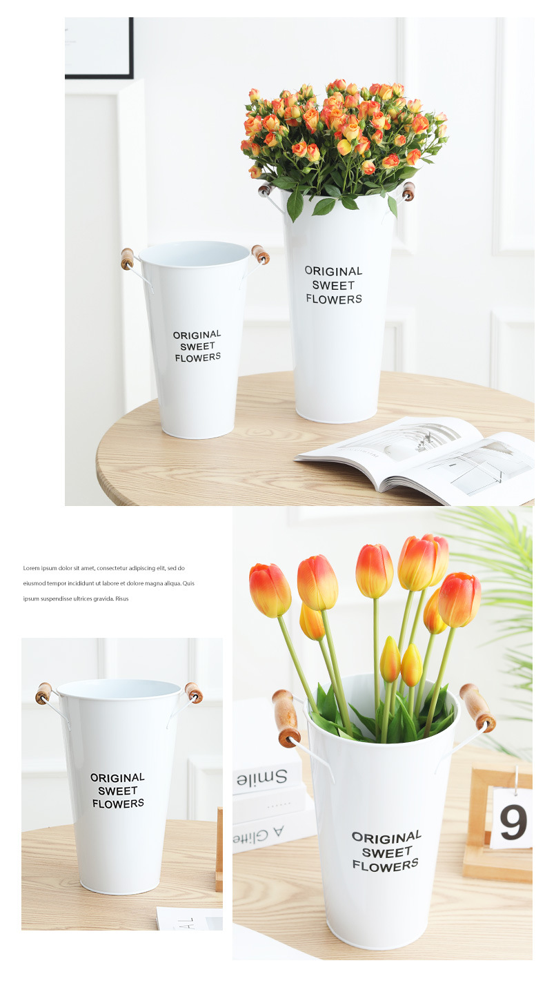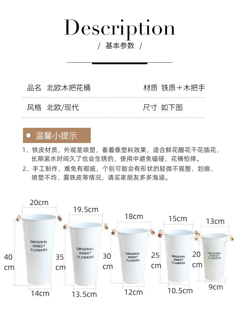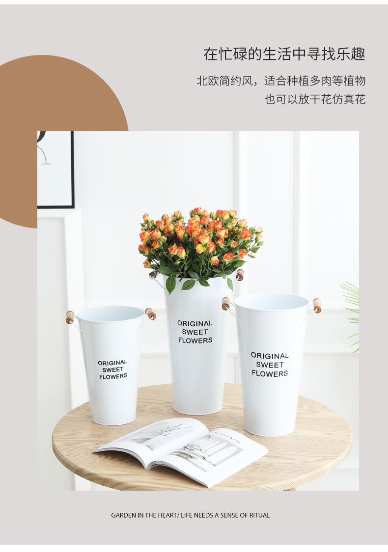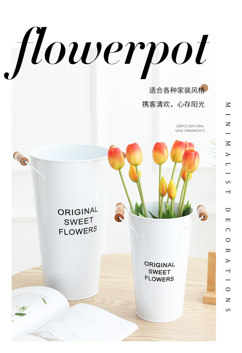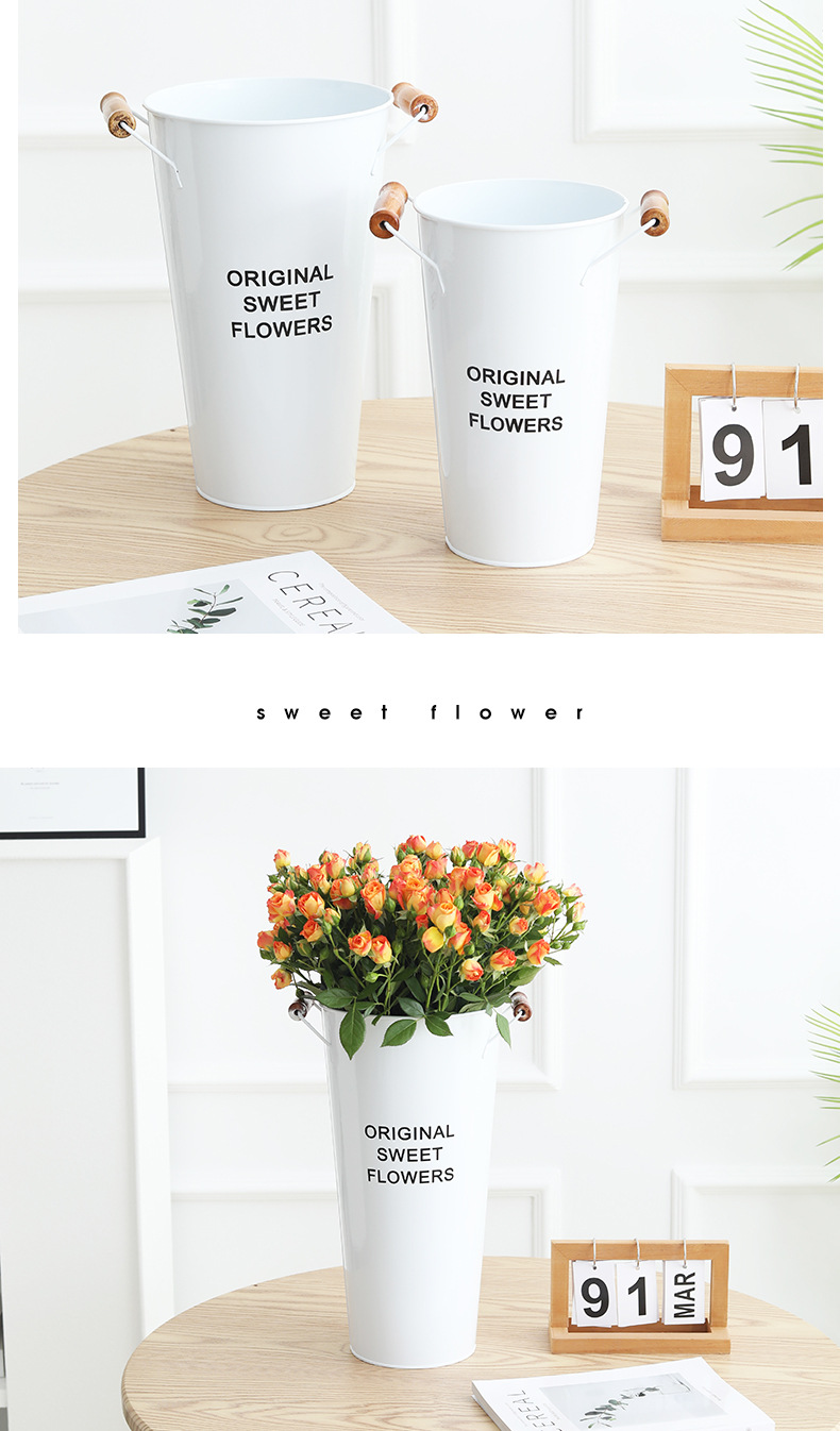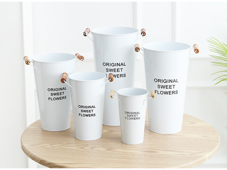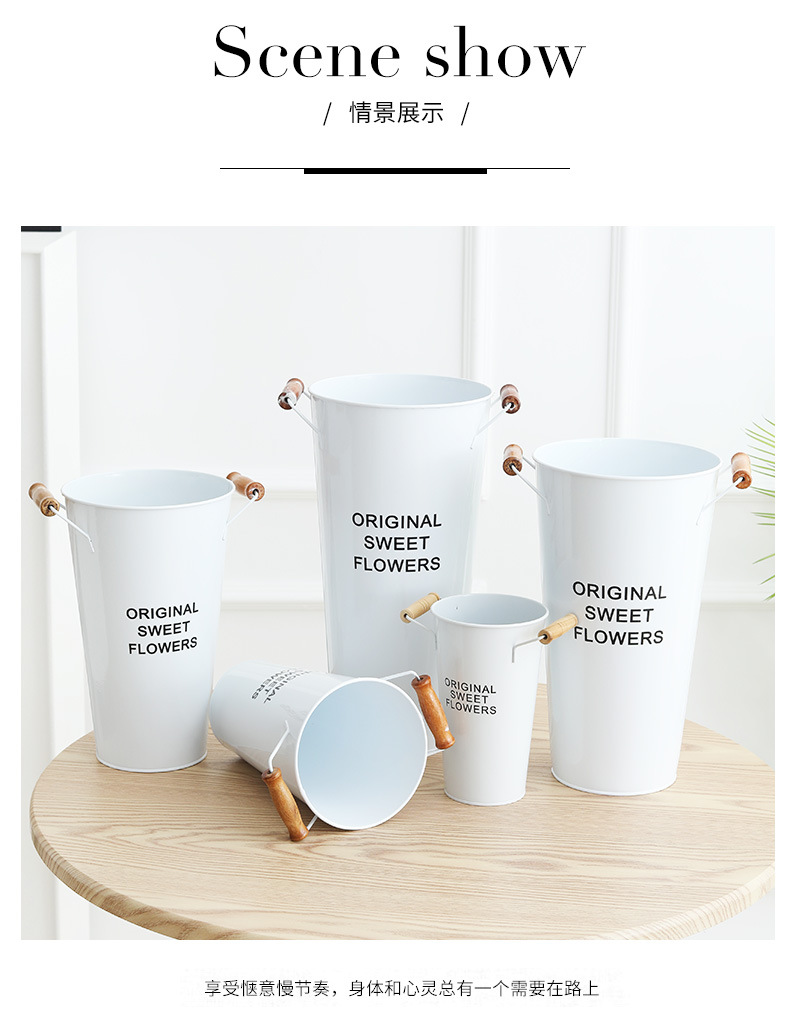 货号:白色木把花桶