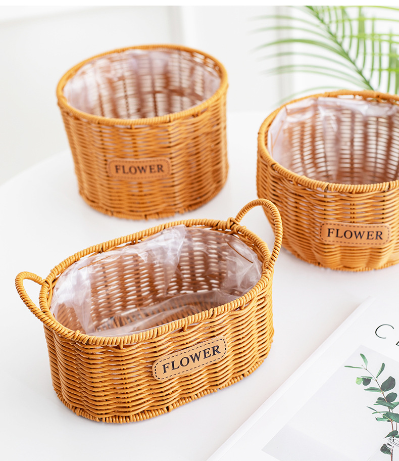 颜色 皮线编织_椭圆双耳篮小号 皮线编织_椭圆双耳篮大号 圆鼓肚_皮线编织花盆口宽19CM 圆柱形_皮线编织花盆口宽19CM
