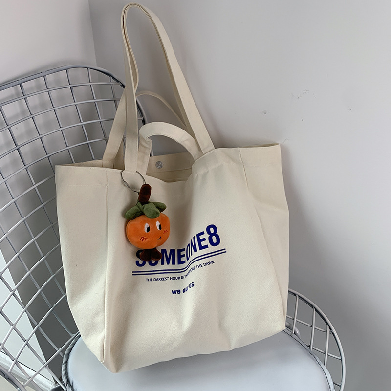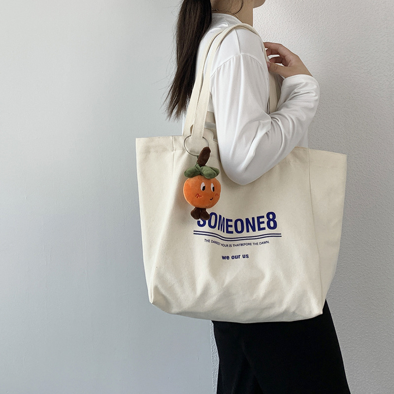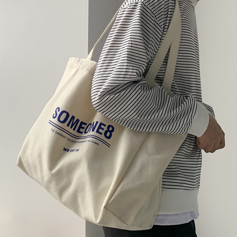 帆布包女单肩慵懒风文艺日韩ins简约大容量字母学生上课书包夏